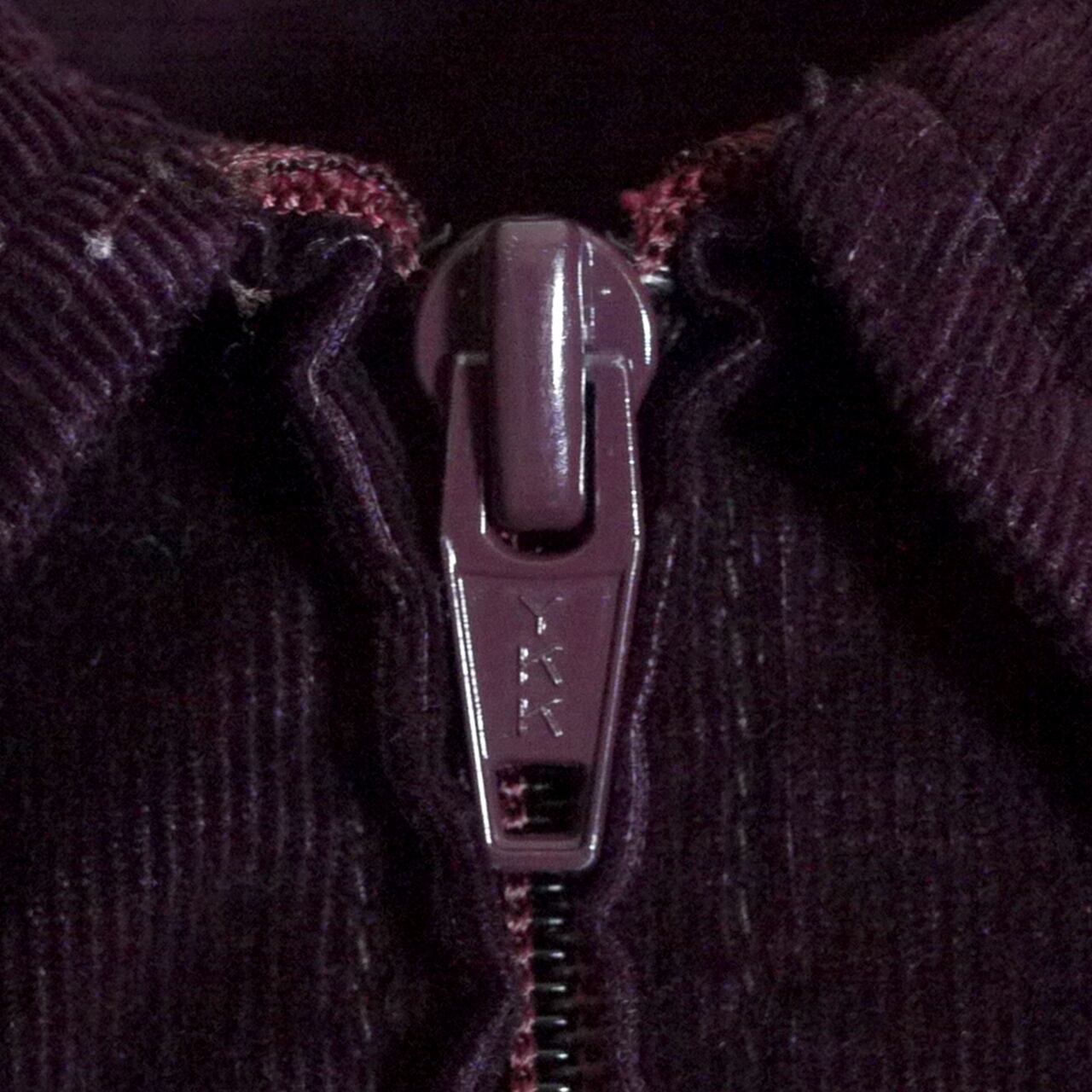 上品なバーガンディーカラーのコーデュロイ素材のつなぎ。