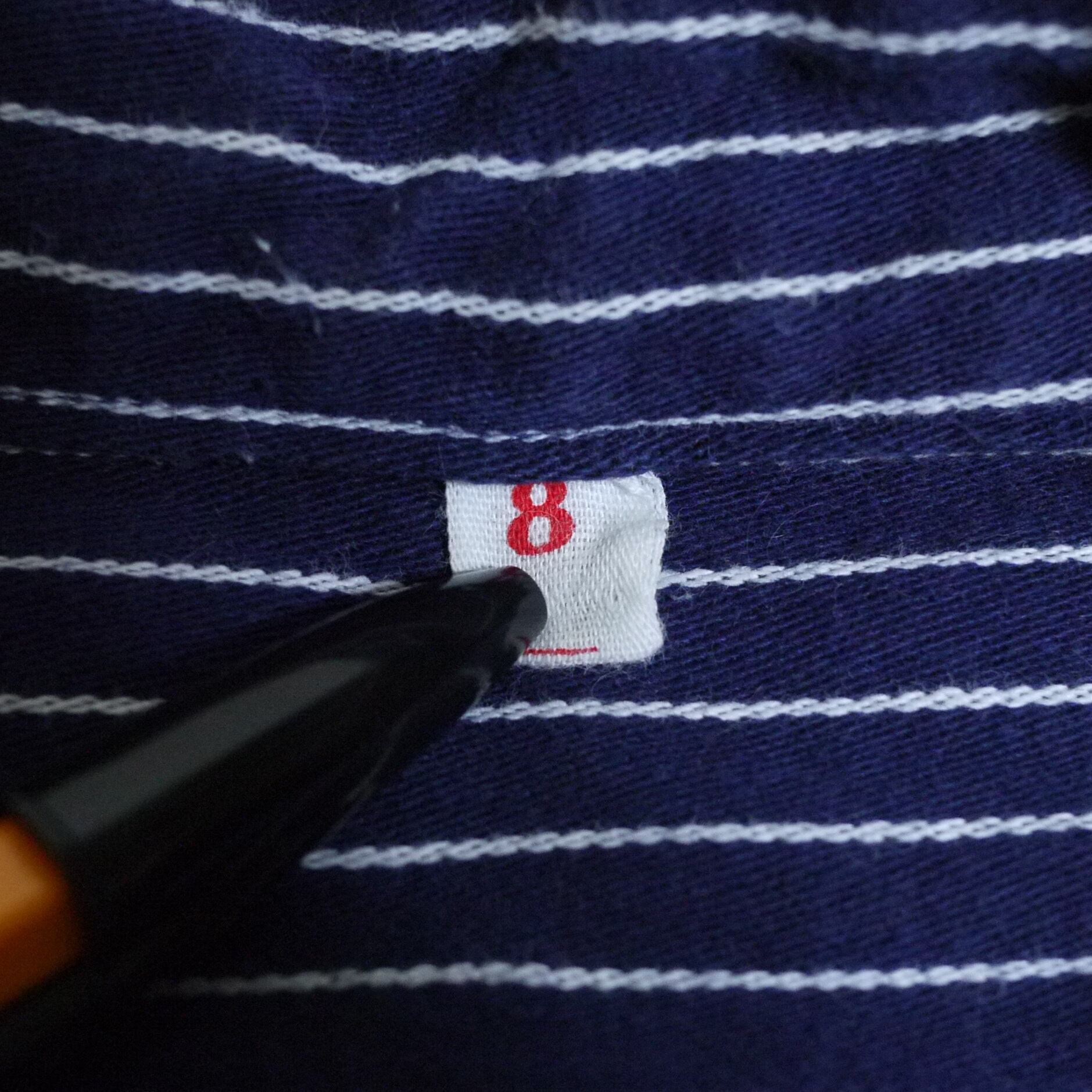 ベーシックなネイビー×ホワイトのストライプ柄のフィッシャーマンシャツ。
