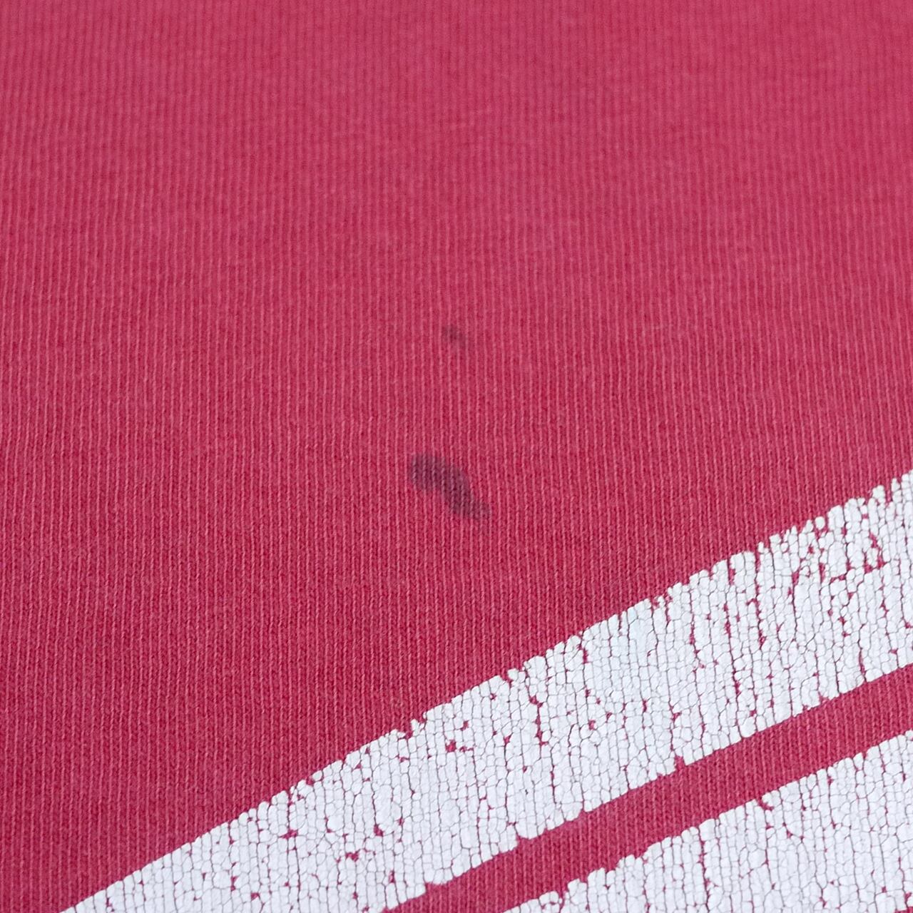 状態は、胸のプリント周辺や左脇に小さな汚れやシミがあります。その他、経年による使用感はありますが、着用に問題ありません。