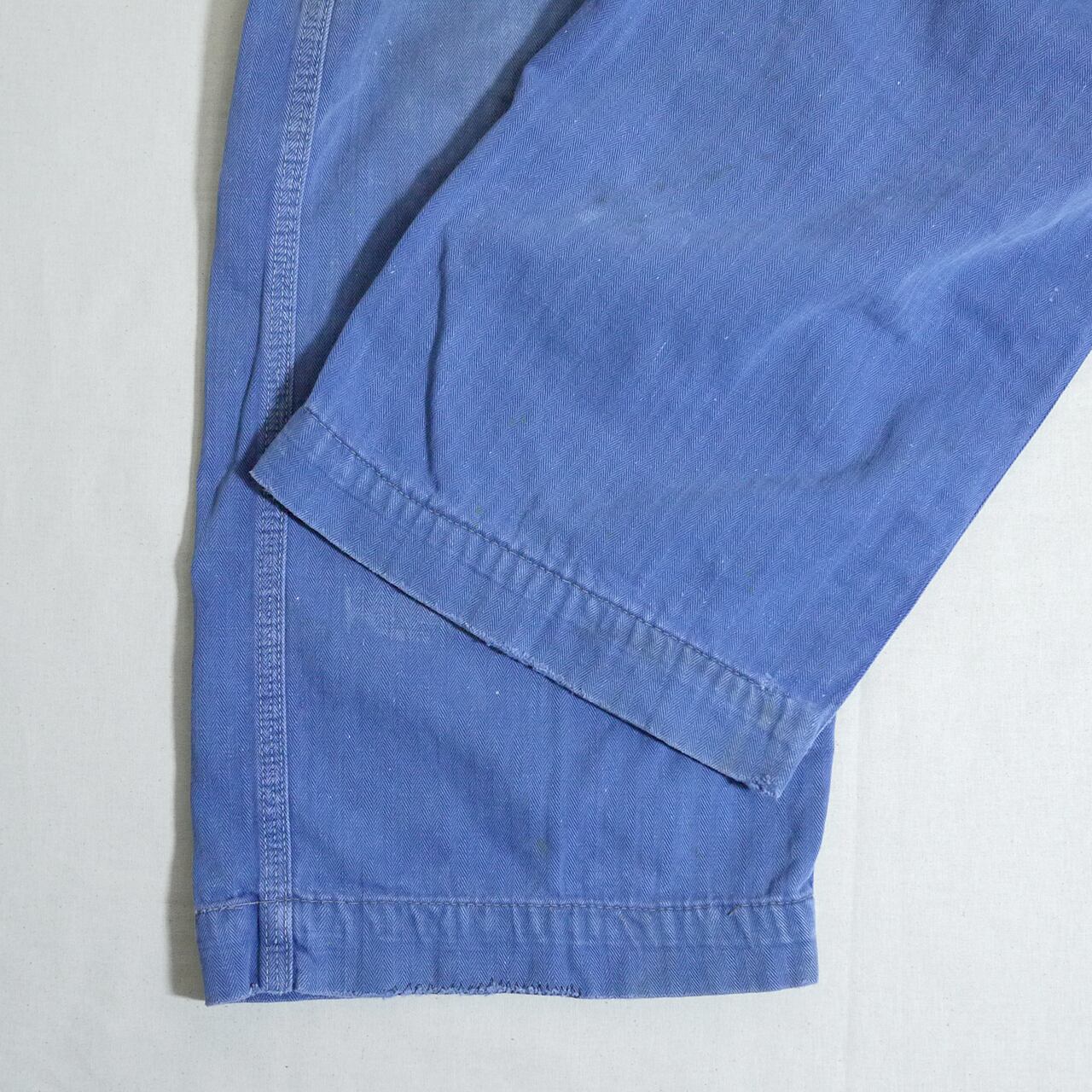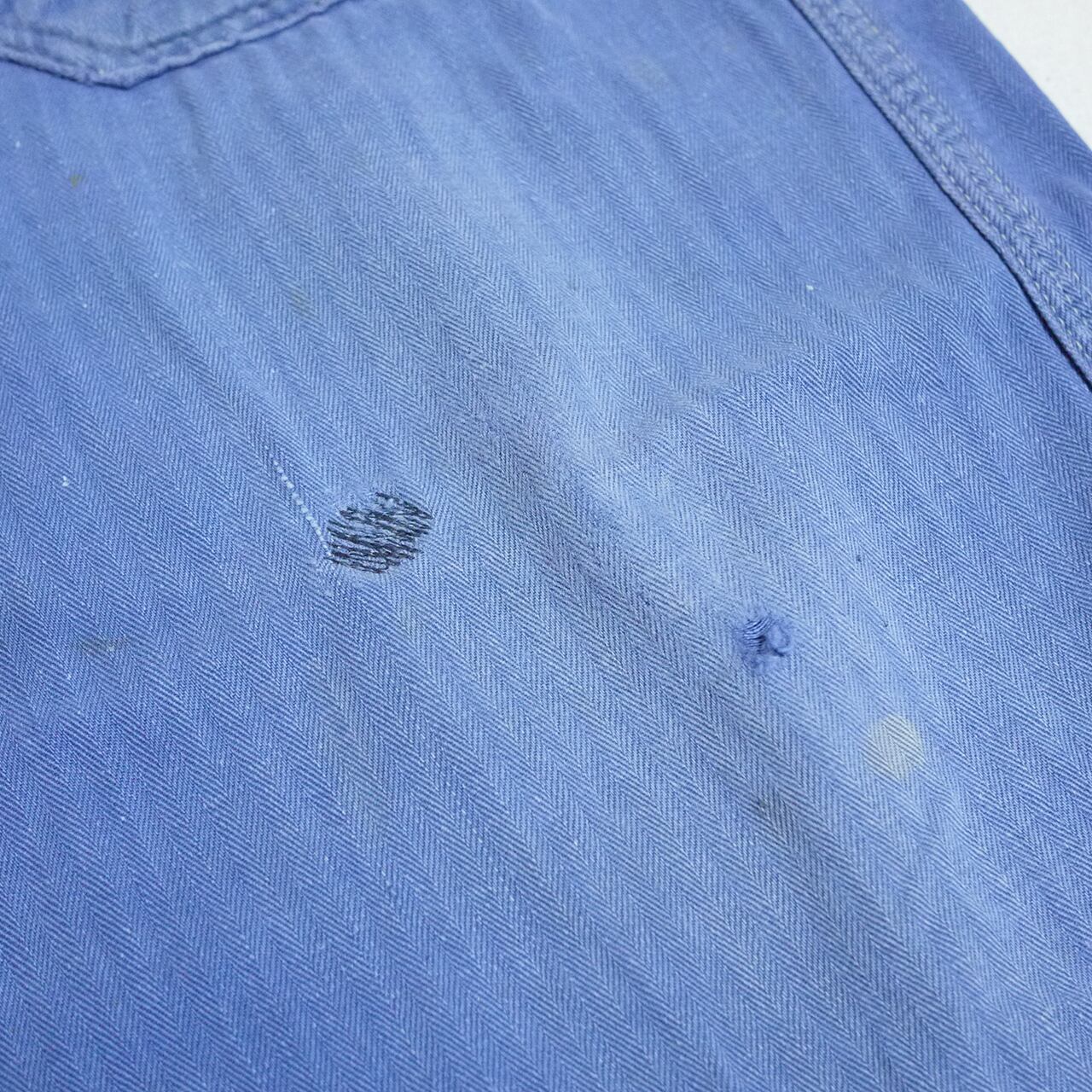 状態は、左ポケットにダメージ。左ひざ辺りと右ヒップ辺りにリペア。所々に小さなシミや汚れ。その他、アイテムの特性上、全体的にスレなどの経年による使用感はありますが、着用に問題はありません。アジと捉えて頂ける方にお願いします。