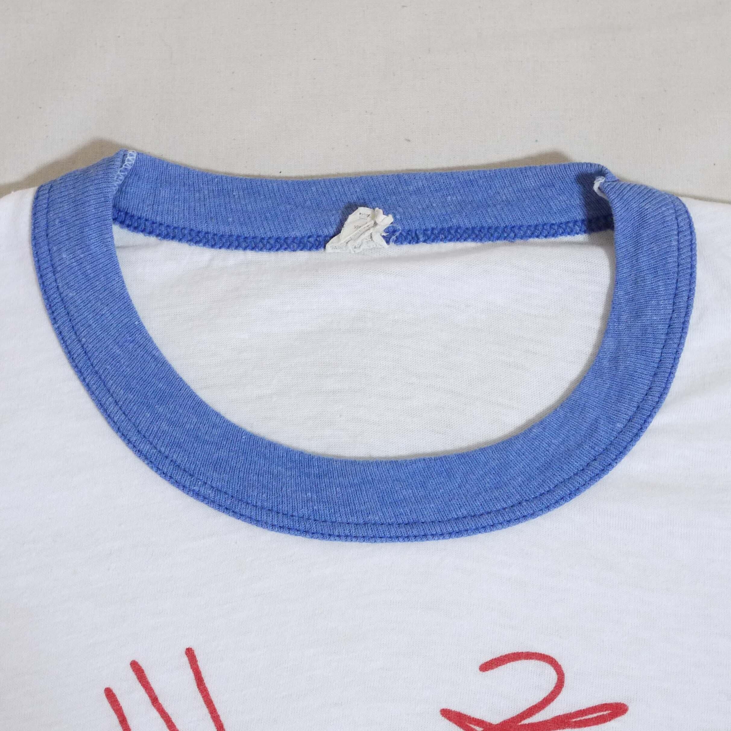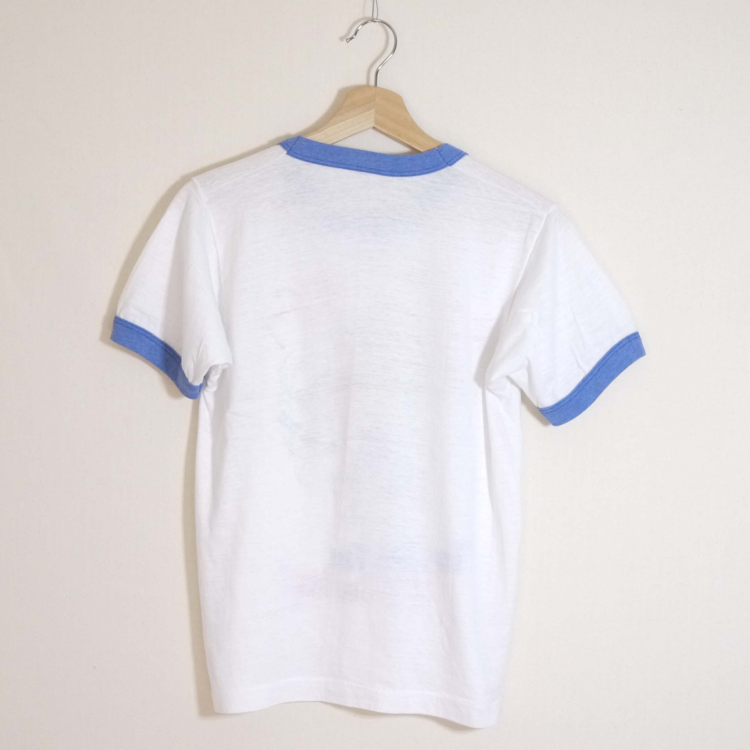 ホワイトカラーのボディにブルーのリンガーTシャツ。