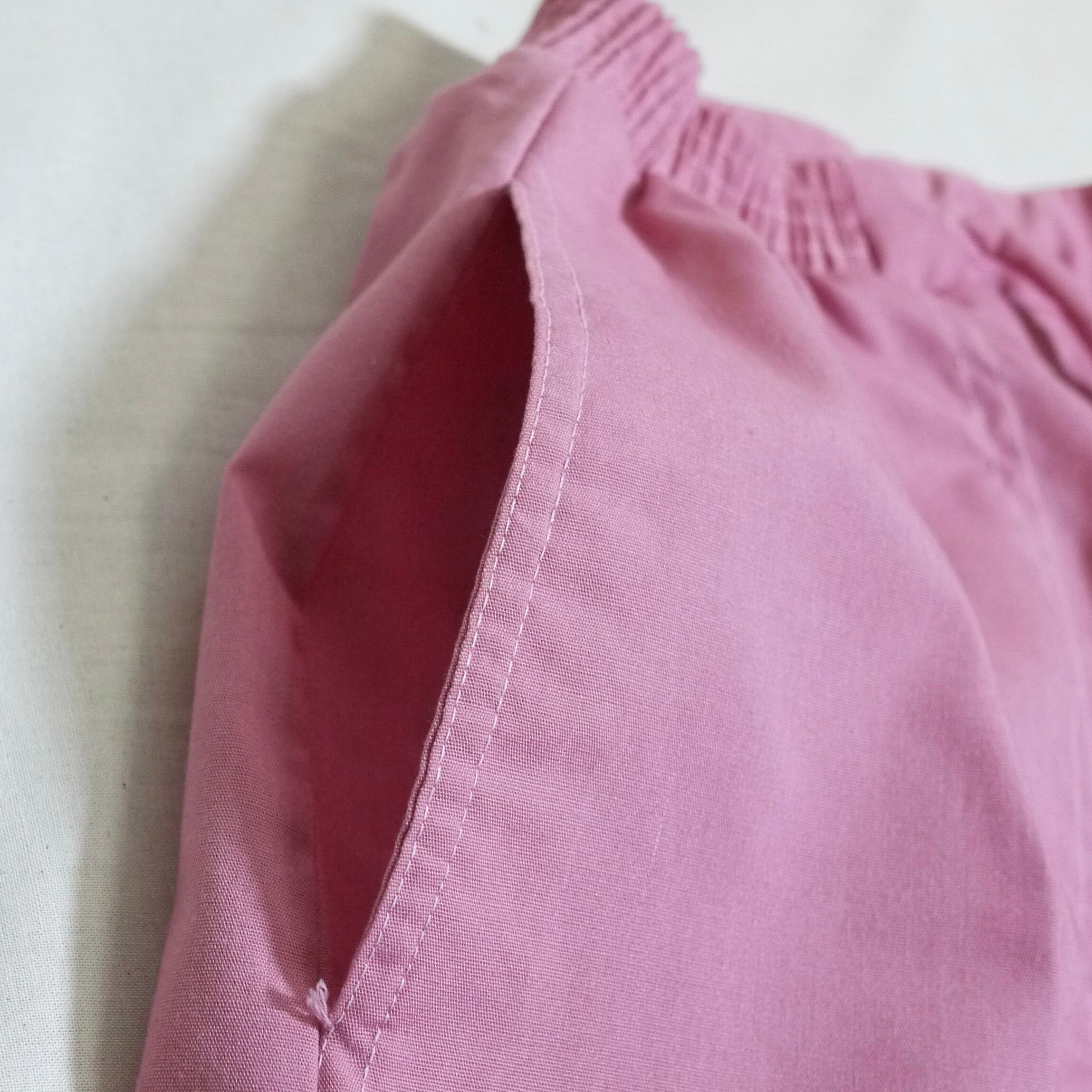 ウェストに紐、ポケットも付く履きやすく使い勝手の良いアイテム。