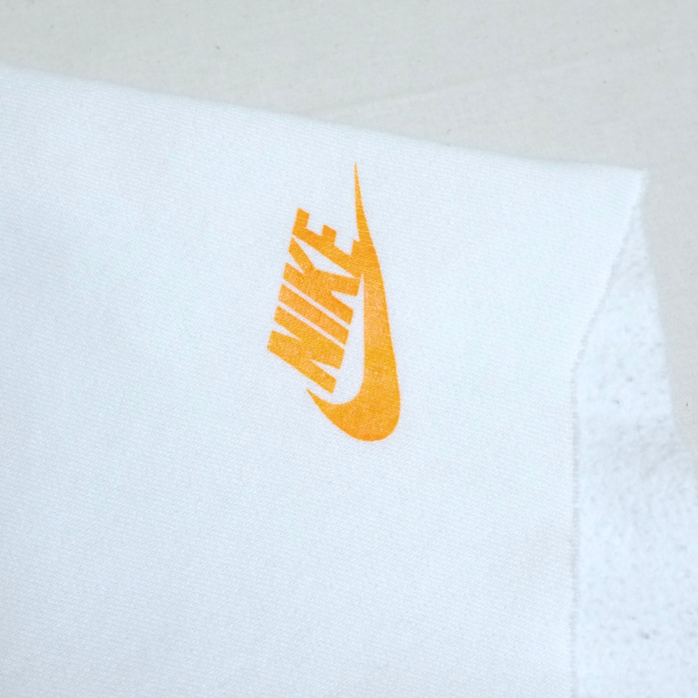 ホワイトカラーのボディにオレンジのネオンカラーが映えるこの年代のNIKEらしいのプリントのカットオフスウェット。