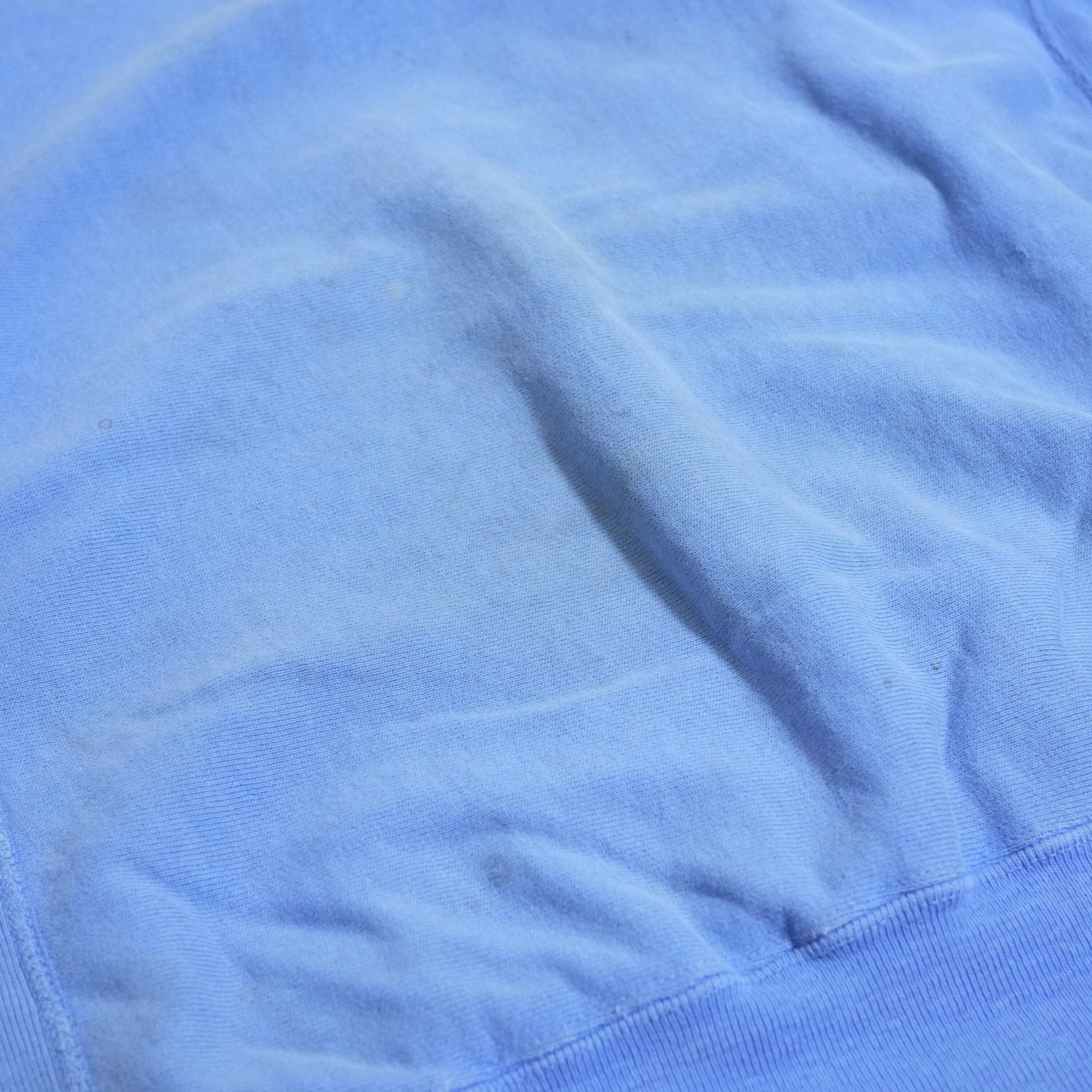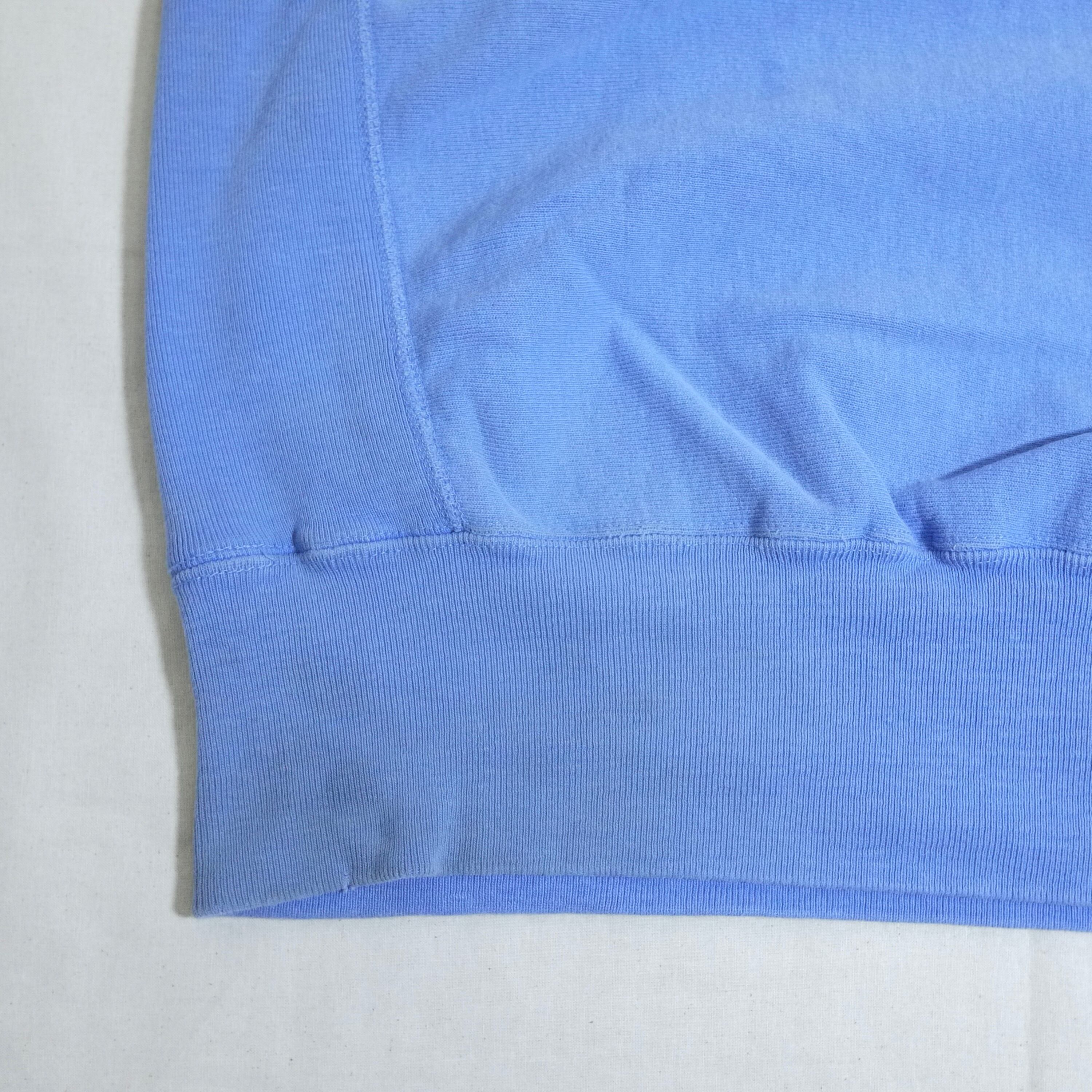 落ち着いたブルーカラーのボディに胸にロゴの刺繍がデザインされたREVERSE WEAVE。