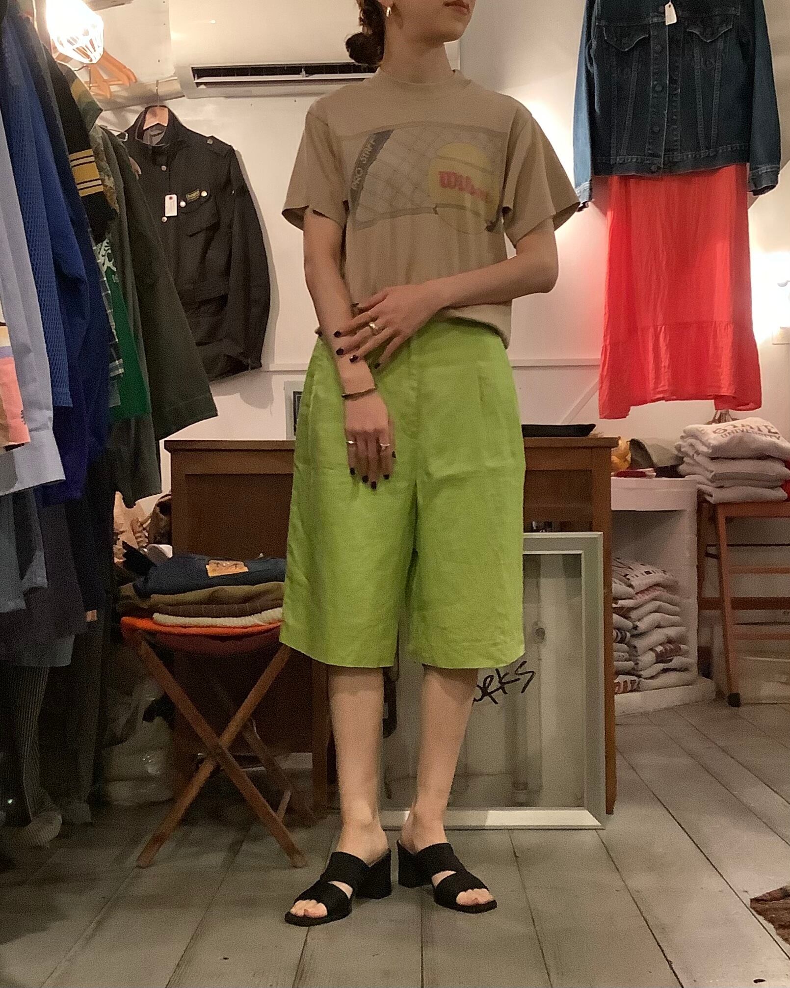 リネン素材が涼しく夏場は勿論、丈が短すぎないので秋冬はロングブーツと合わせても可愛いです。。太もも周りはゆったりとしたお作りで普段脚出し抵抗のある方も比較的履きやすいシルエットかと思います!