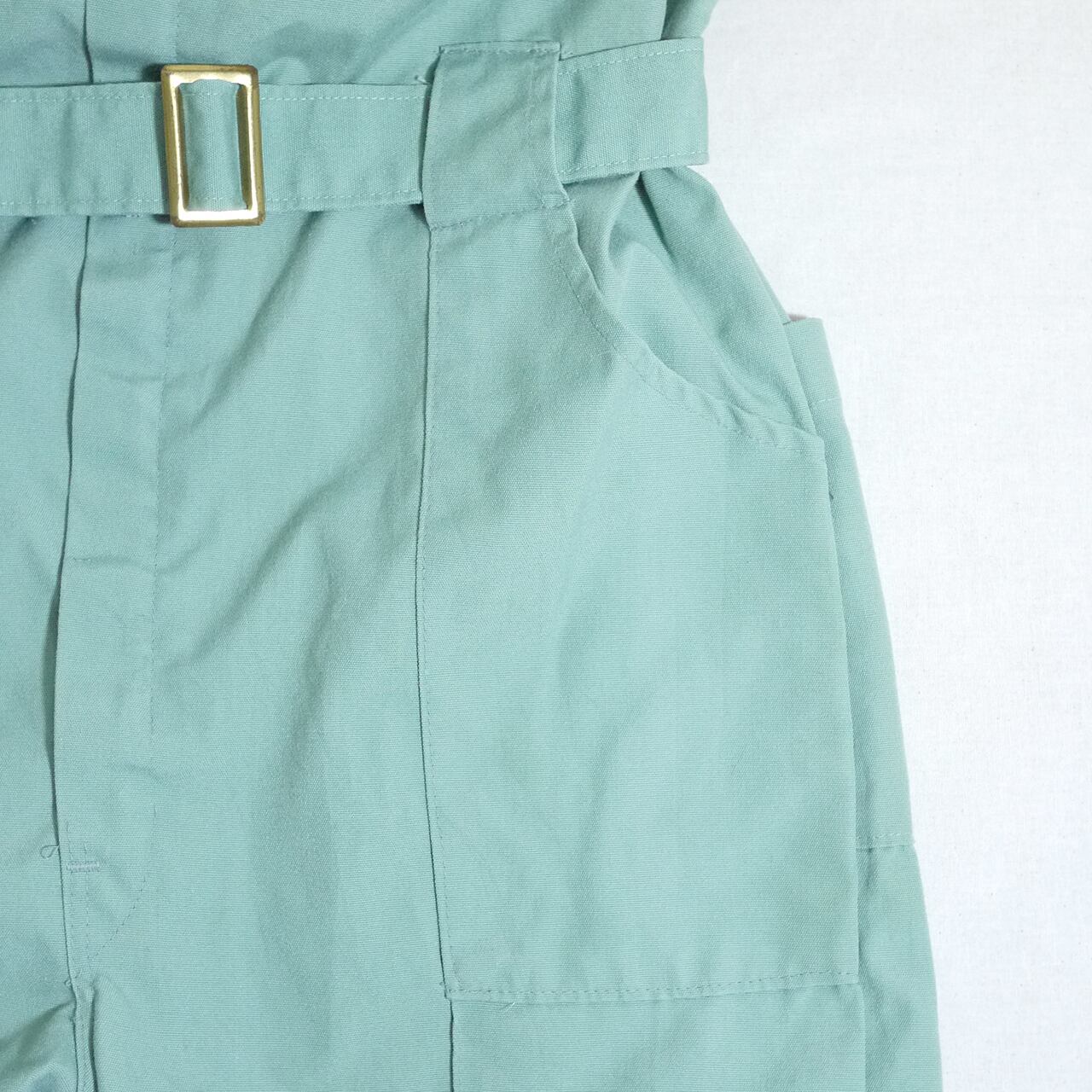 落ち着いたブルーカラーとウェストベルトが程よく女性らしさを演出してくれます。