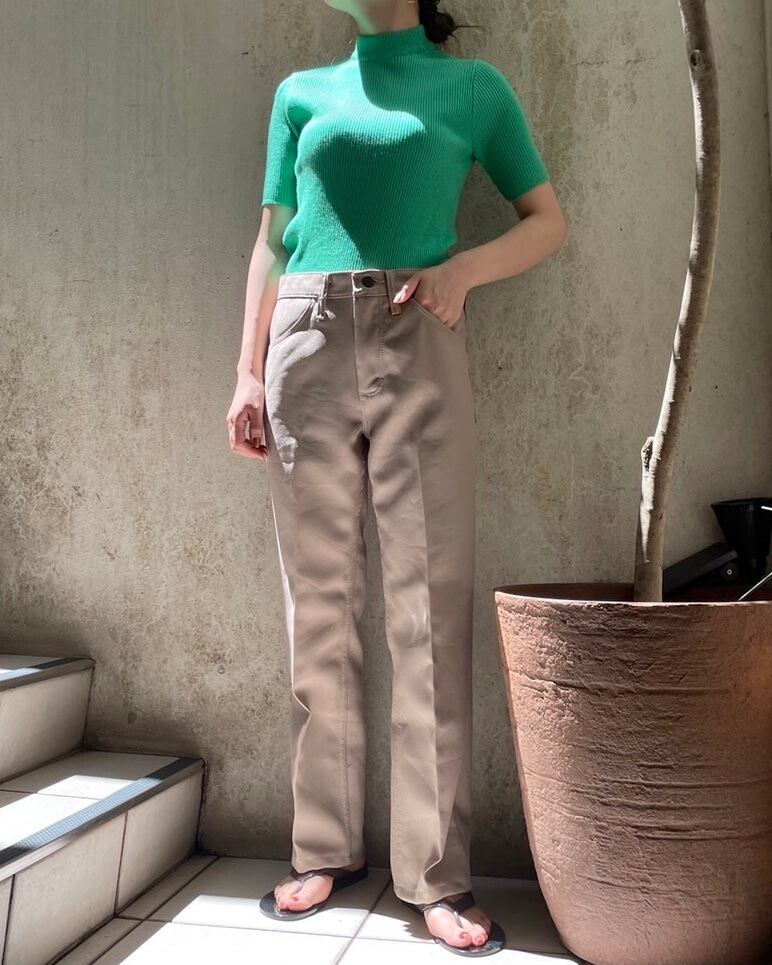 センタープレス入りのドレッシーな雰囲気ながら、着用や洗濯を重ねてもシワになりにくい素材感も魅力のひとつ。