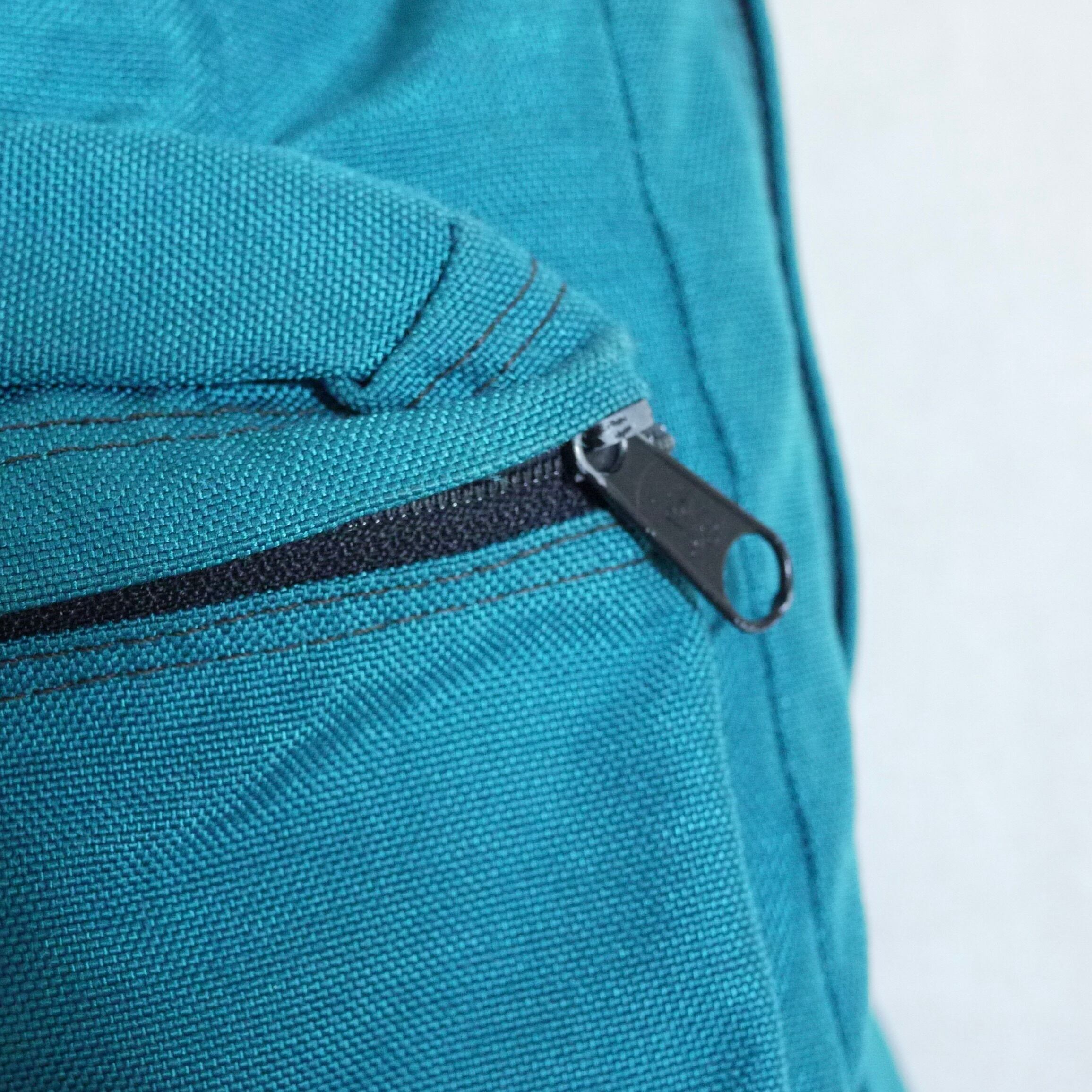 ブルーとグリーンの中間のようなカラーのデイパック。