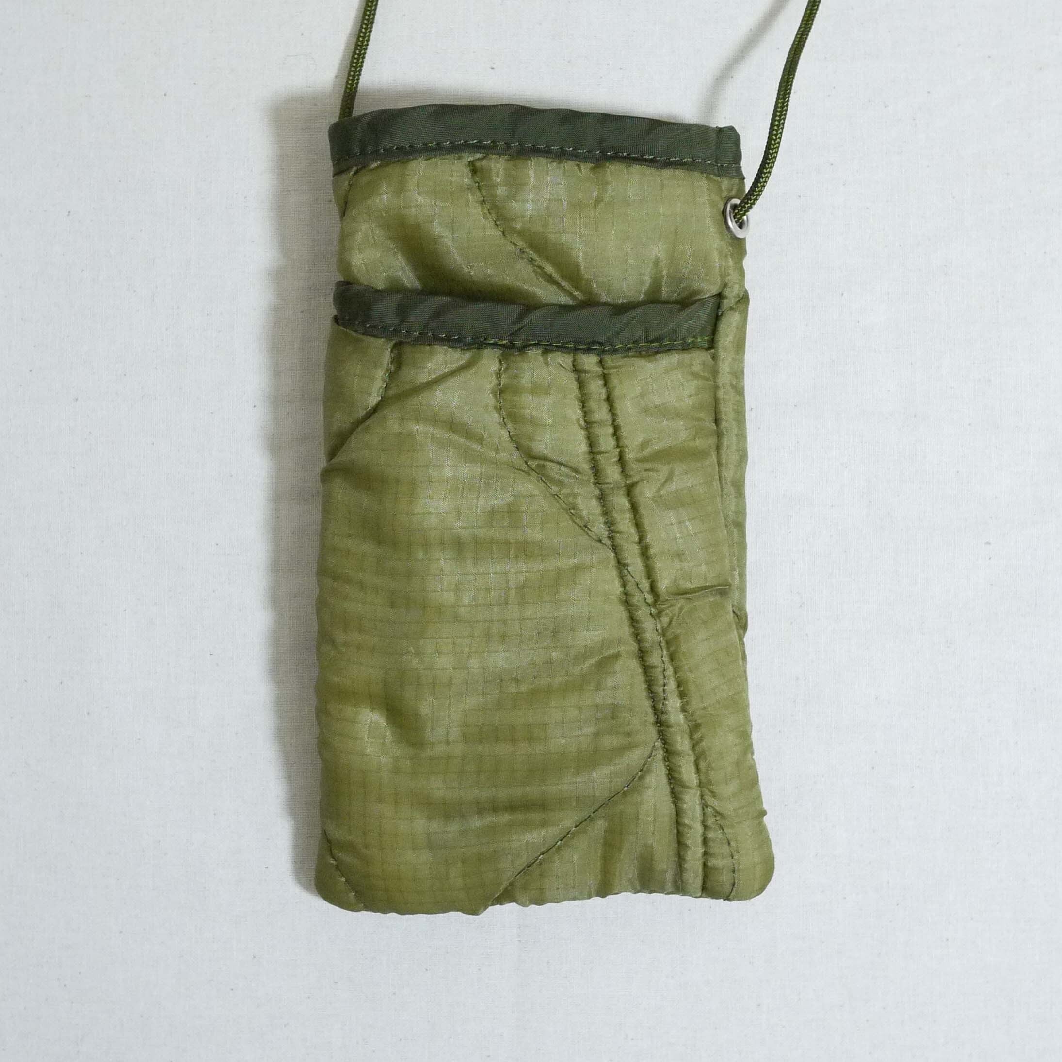 スマホ、スマホに入っていないカード、肩紐にカギを引っ掛けることで、このポシェット一つで出かけられる想定で制作しました。