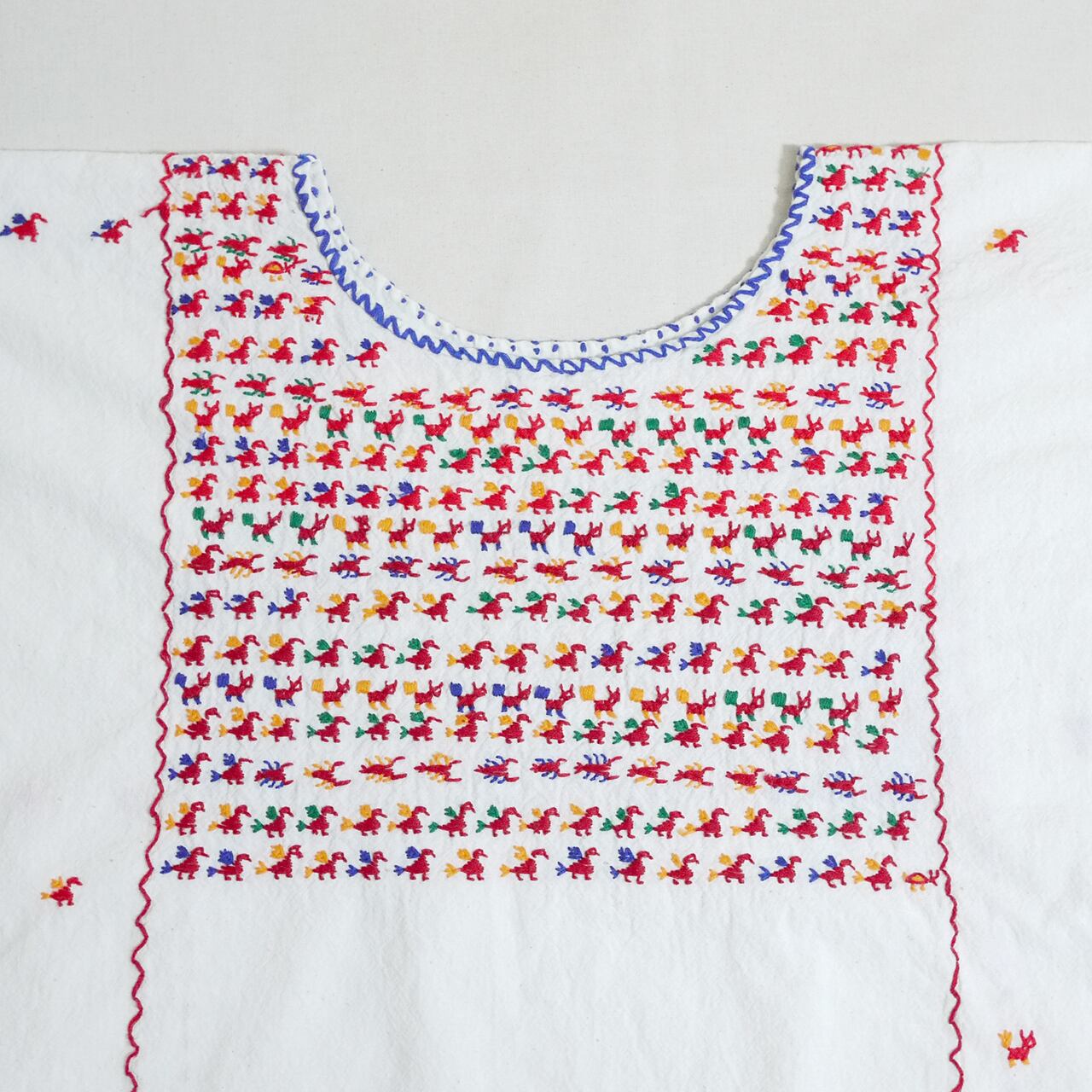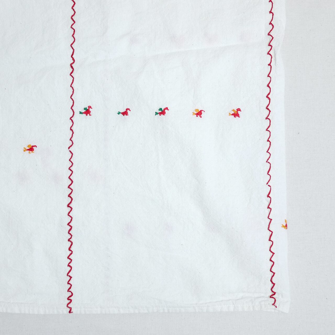 ホワイトカラーのボディに動物モチーフの刺繍が入ったワンピース。