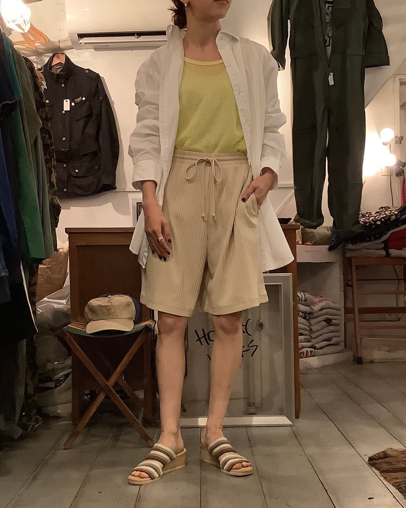 ウェストに紐、ポケットも付く履きやすく使い勝手の良いアイテム。