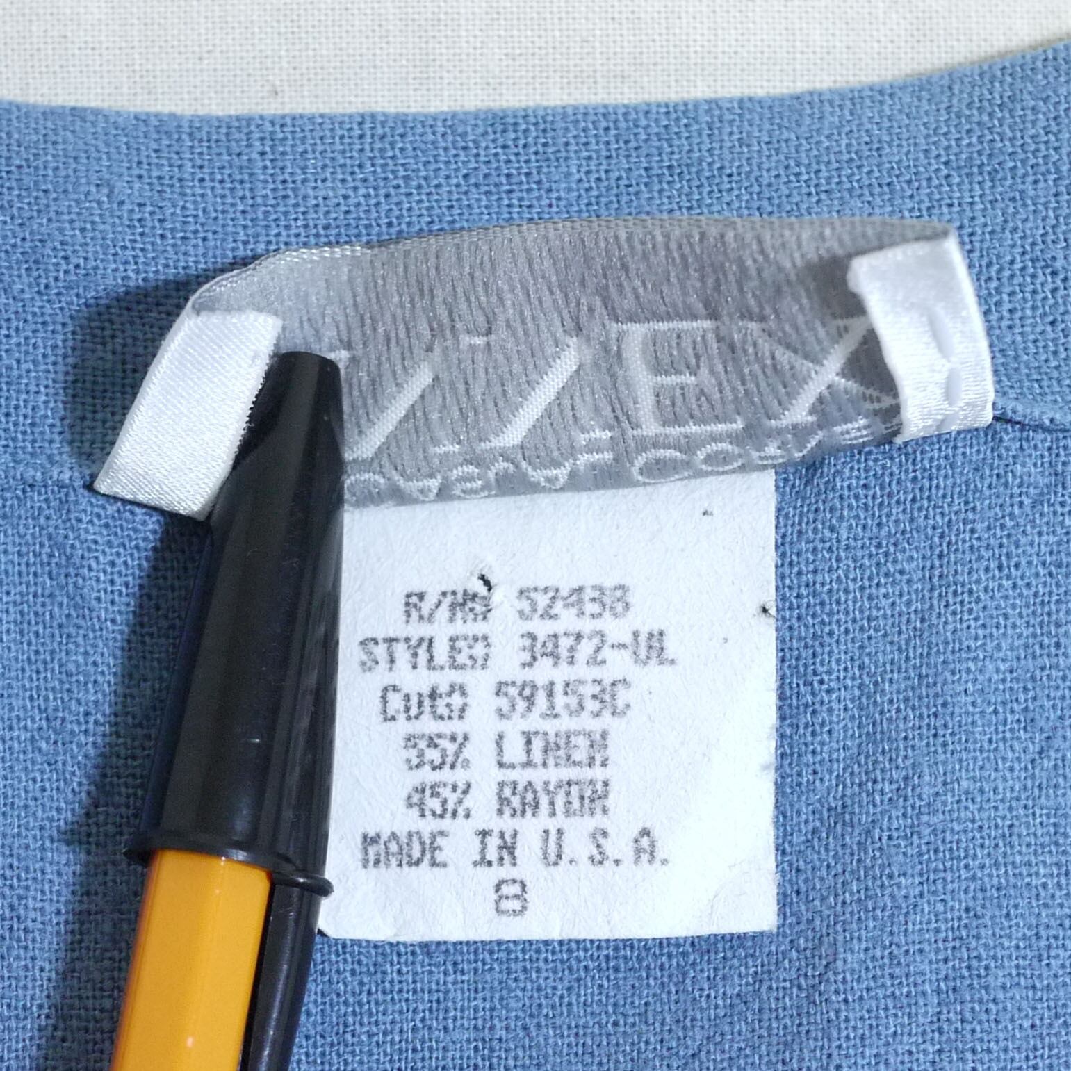 アメリカ製。リネン55%、レーヨン45%。