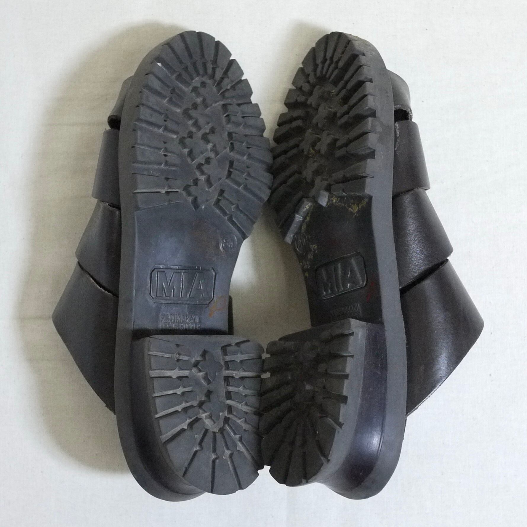 編み込まれたアッパーデザインが印象的なレザーサンダル。
