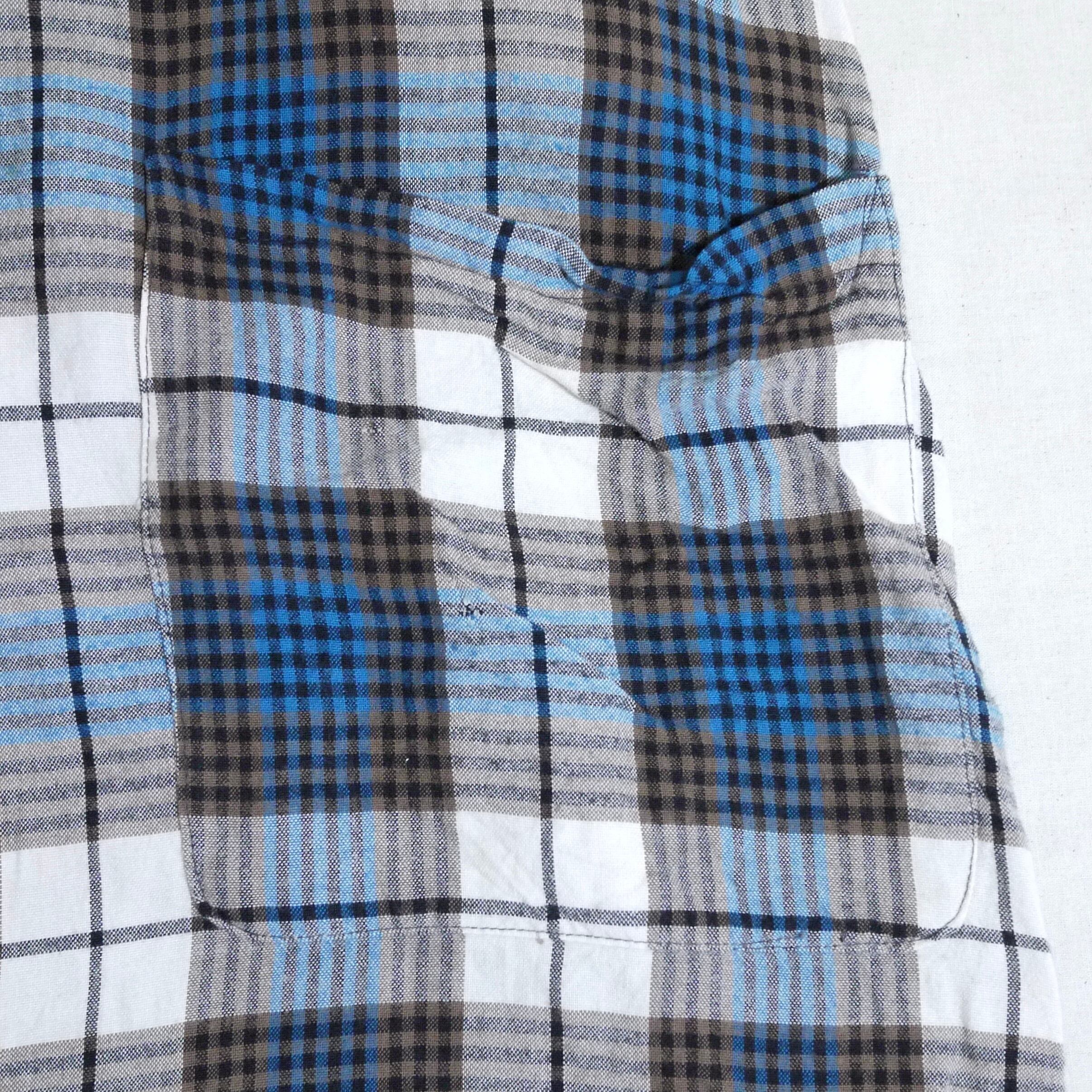 ブルーカラーをベースにしたチェック柄のガウン。