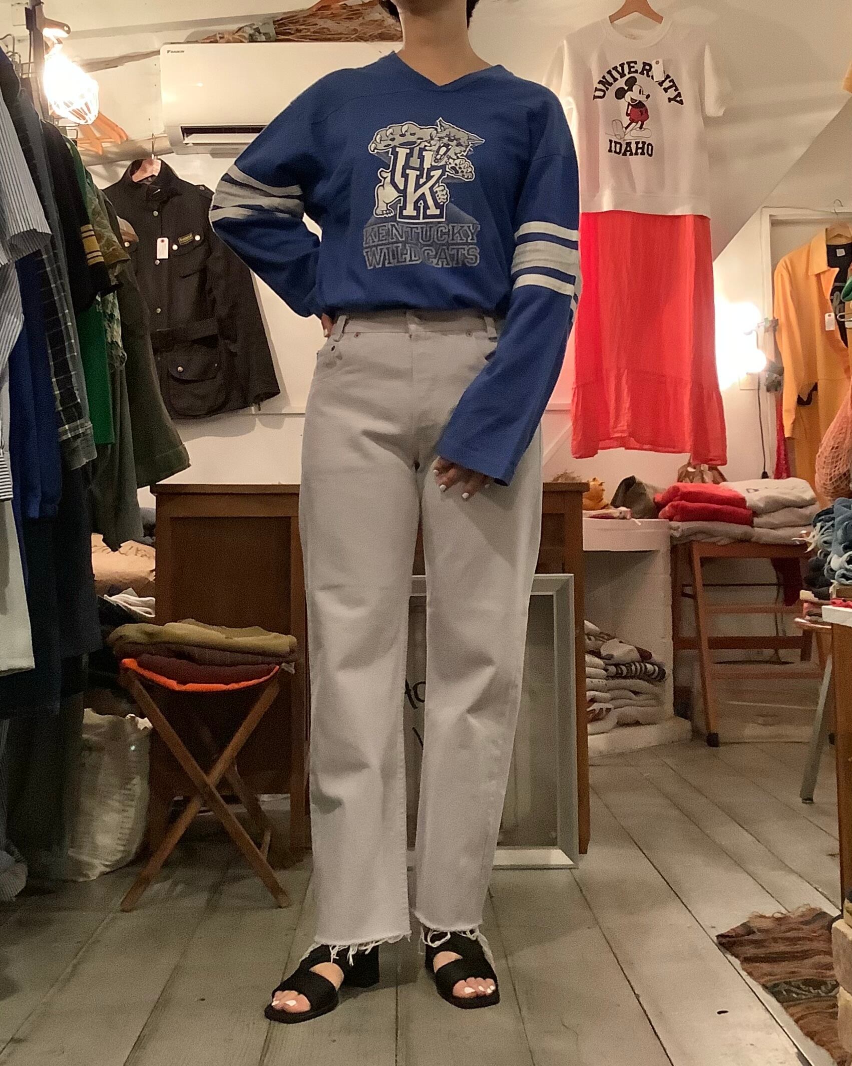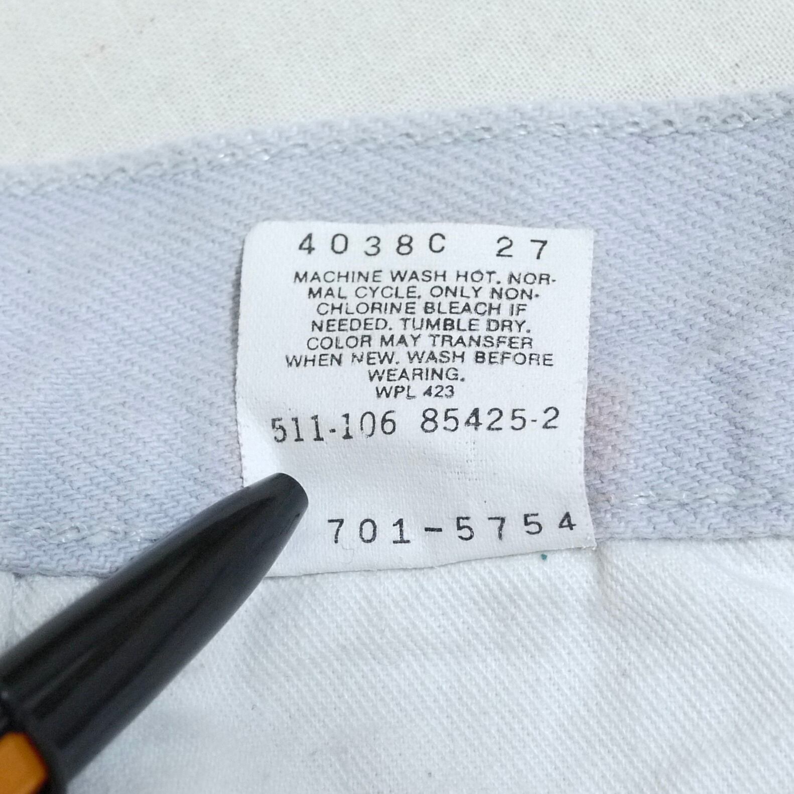 コットン100%。赤タブスモールe。トップボタン裏の刻印511。