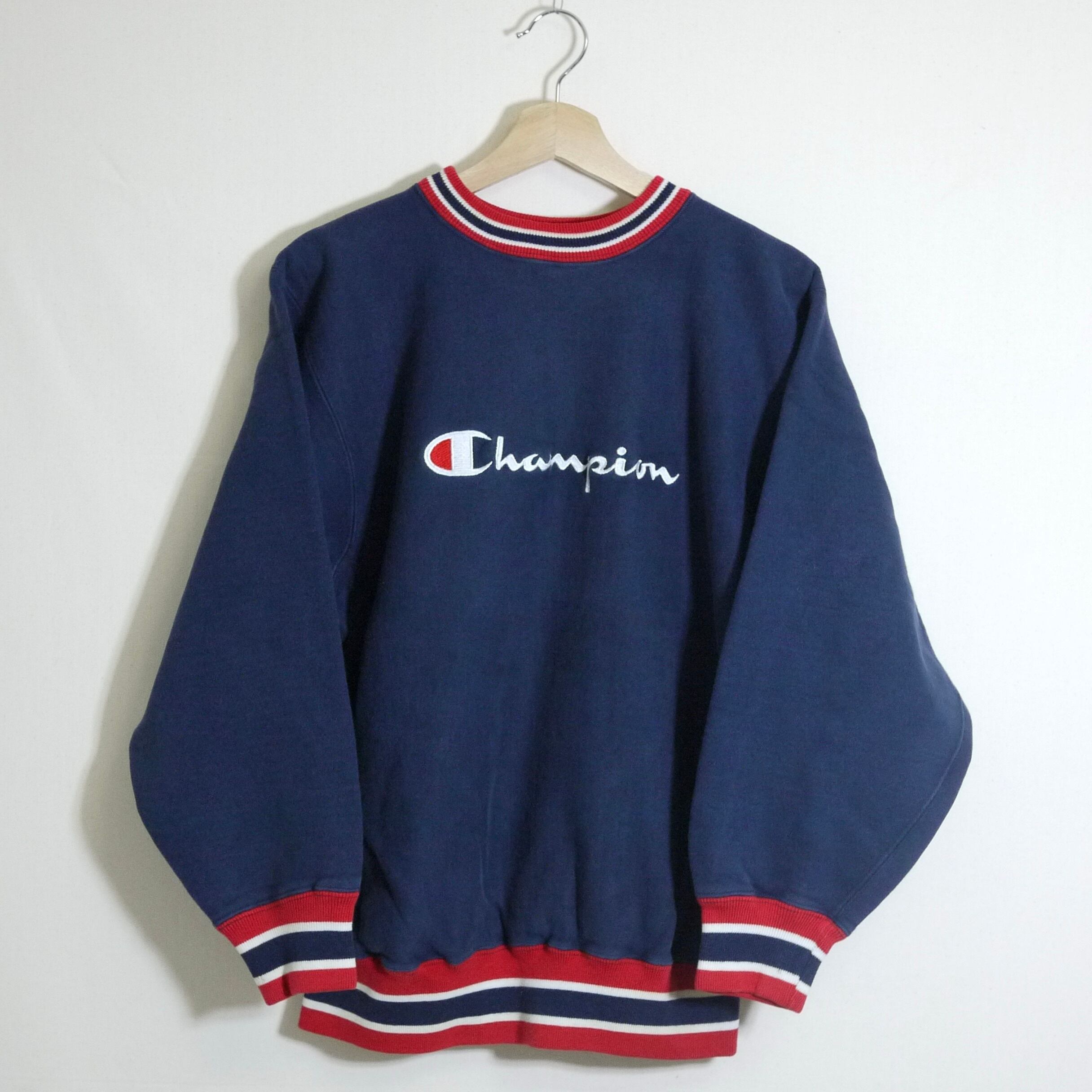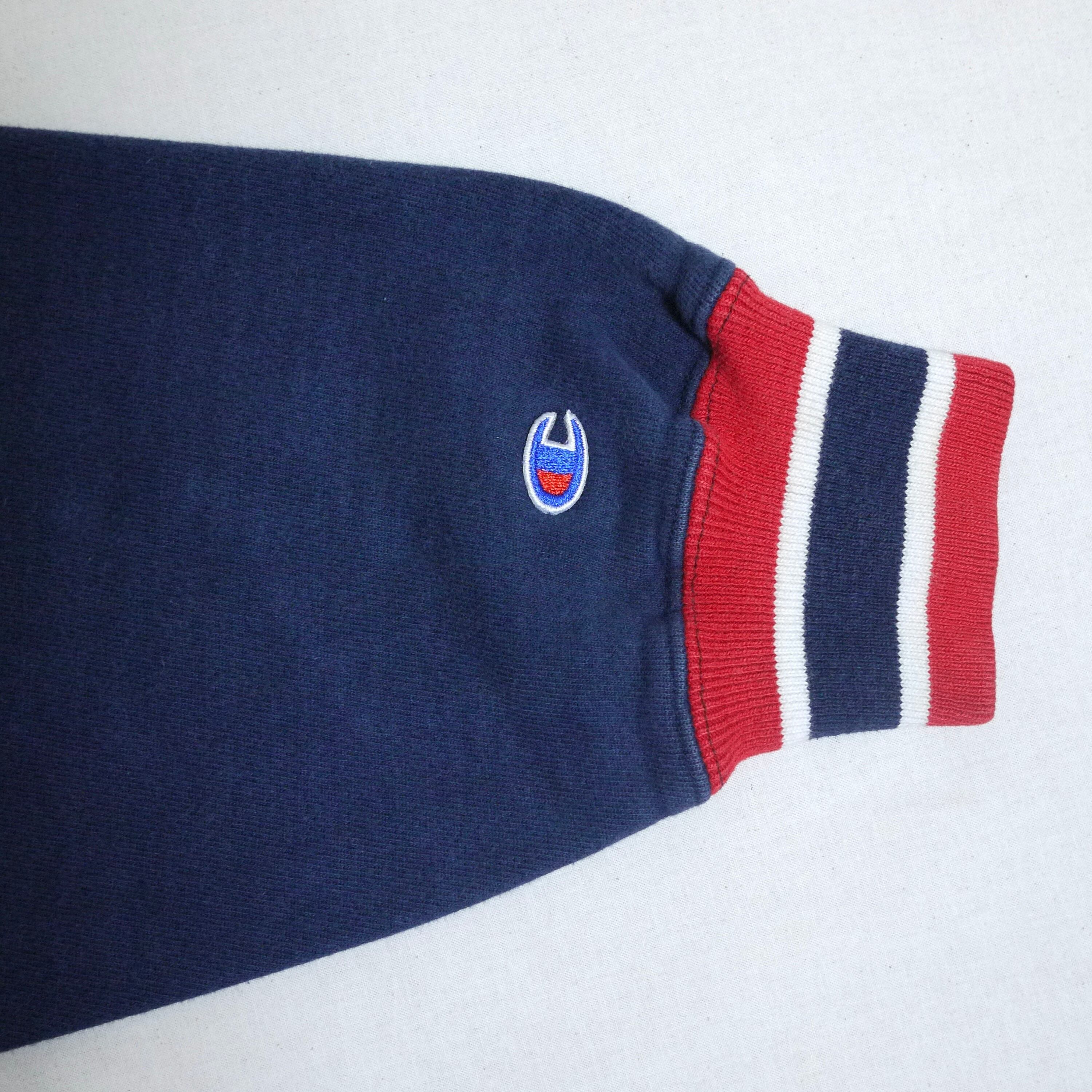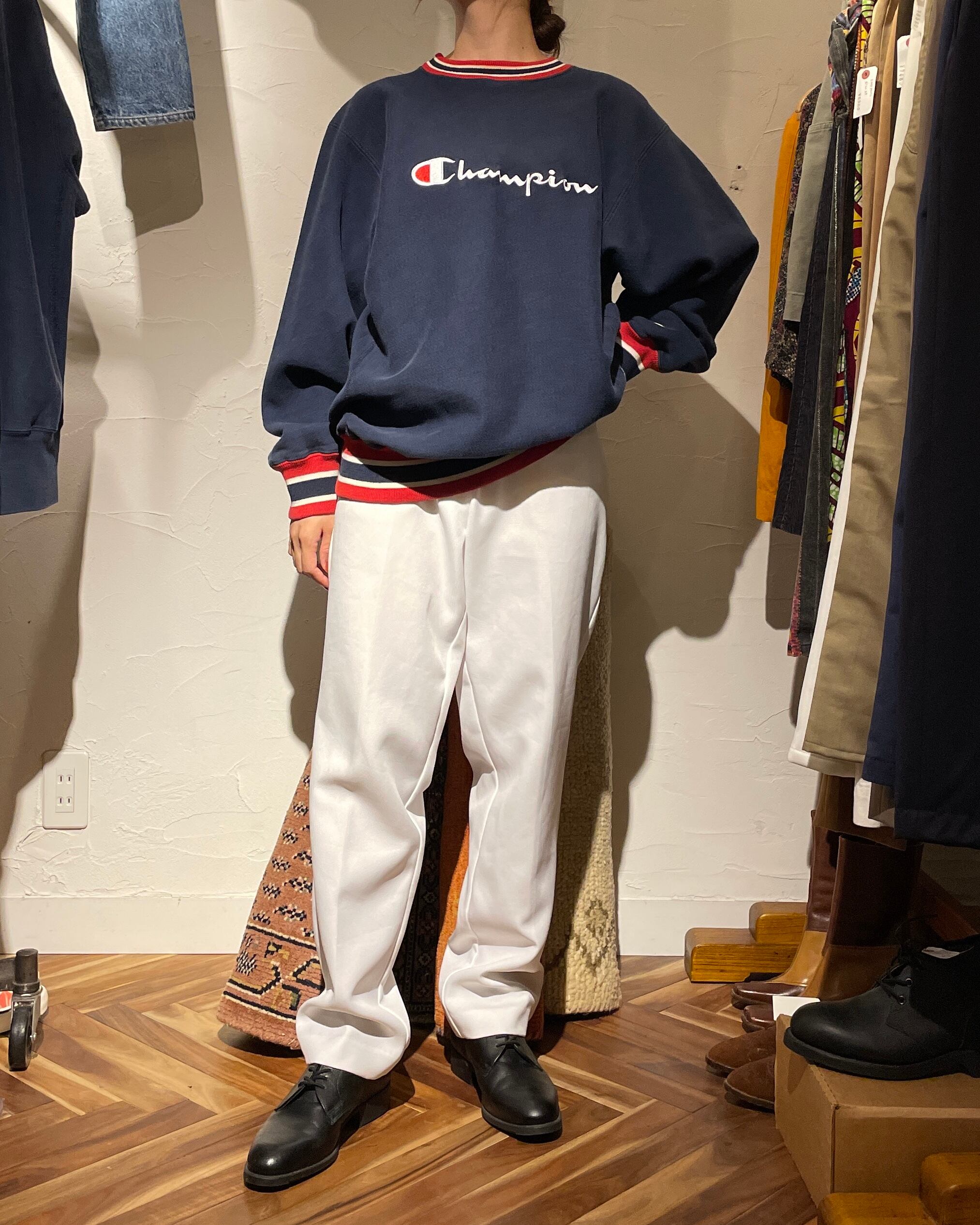 しっかりとした生地で裾のリブもちゃんと残っておりましたので、お好みでスタイリングによって着丈は変えて頂けます。大きすぎず小さすぎない程よくゆとりのある小柄の方も着やすいサイズ感。ネイビー×レッドの配色が◎スクリプトロゴのチャンピオンらしさのある一枚が可愛いです。