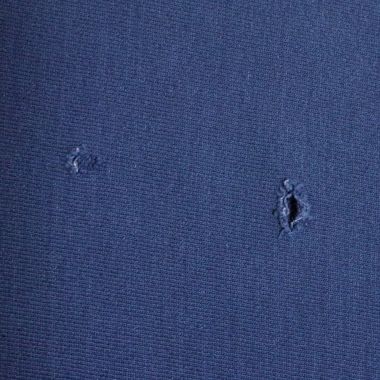 状態は、前身頃の右側と袖に汚れ。左袖口とネックのステッチ部分にほつれ。袖に小穴が一か所。背中に小穴が二か所。その他、全体的に経年による使用感は多少ありますが、着用に問題はありません。