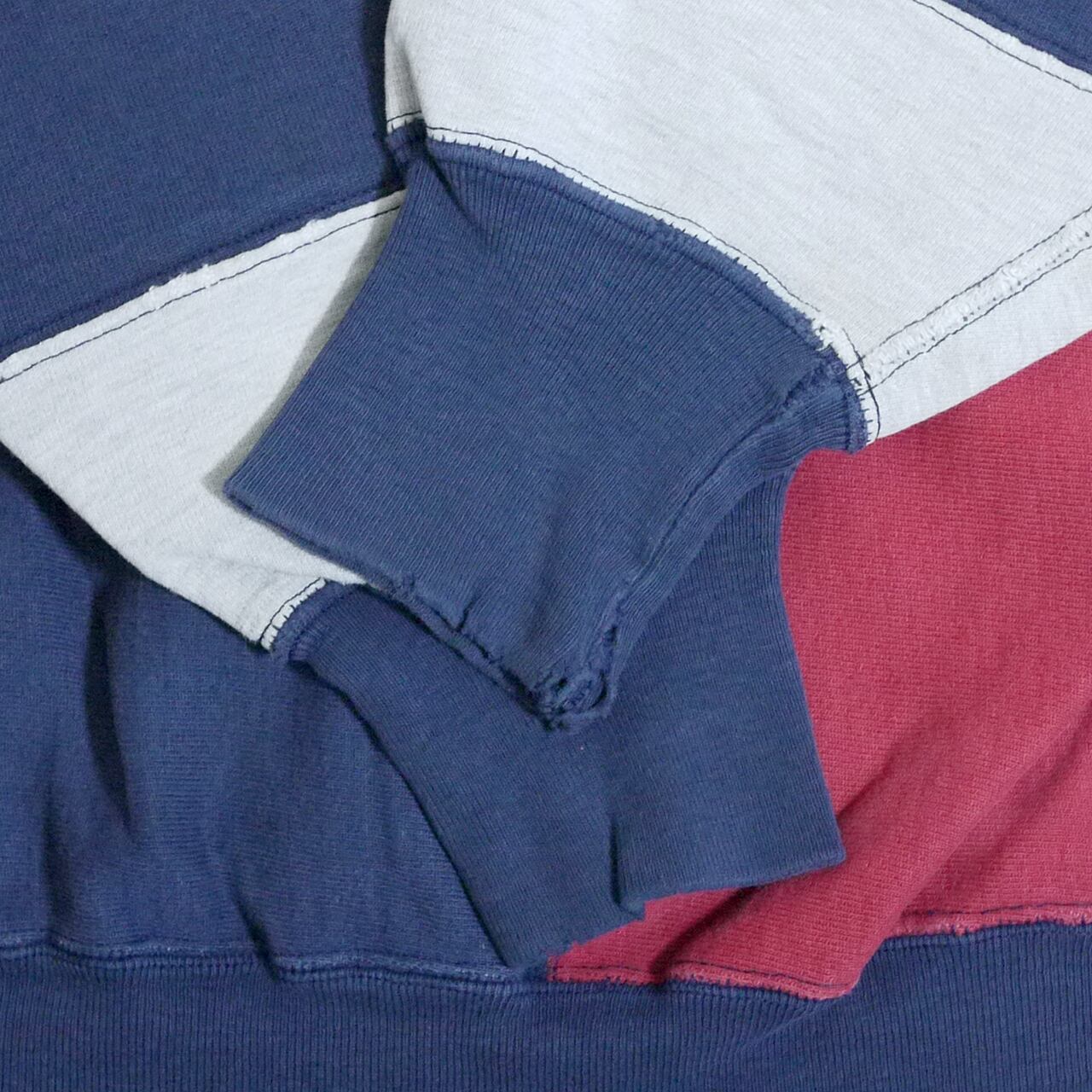 ネイビー×レッド×グレーの切り替えデザインに胸にロゴ刺繍。