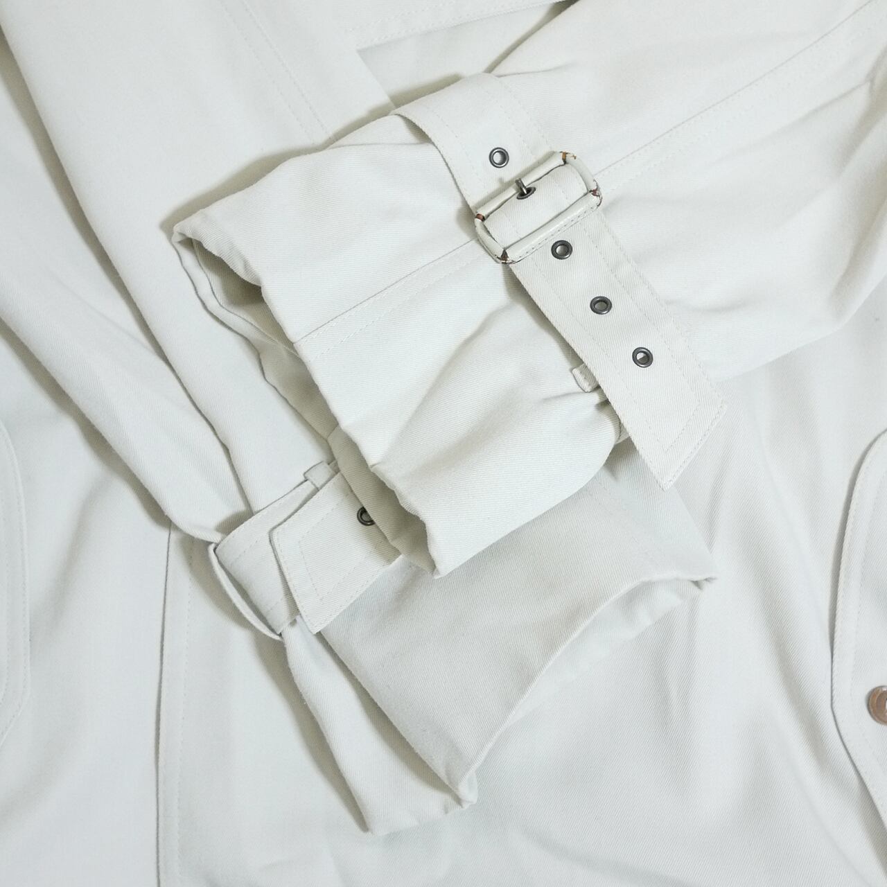 ベーシックなトレンチコートのデザインで様々なスタイルに取り入れやすいアイテム。