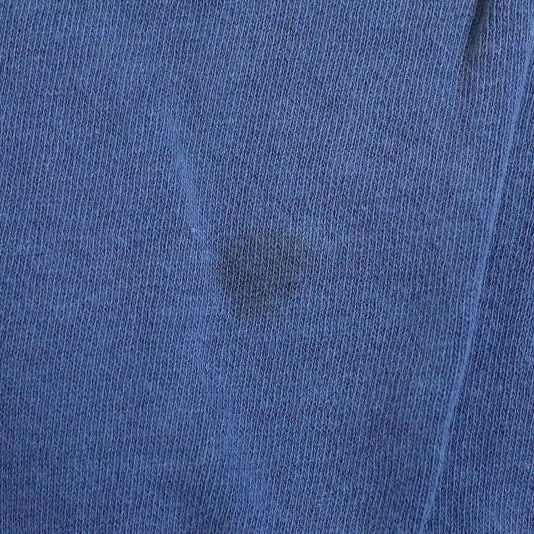 状態は、右袖にダメージ。右袖、前身頃、背中に小穴。後身ごろの裾付近に汚れ。裾のリブに汚れ。その他、経年による使用感はありますが、目立ったダメージや汚れはなく着用に問題はありません。