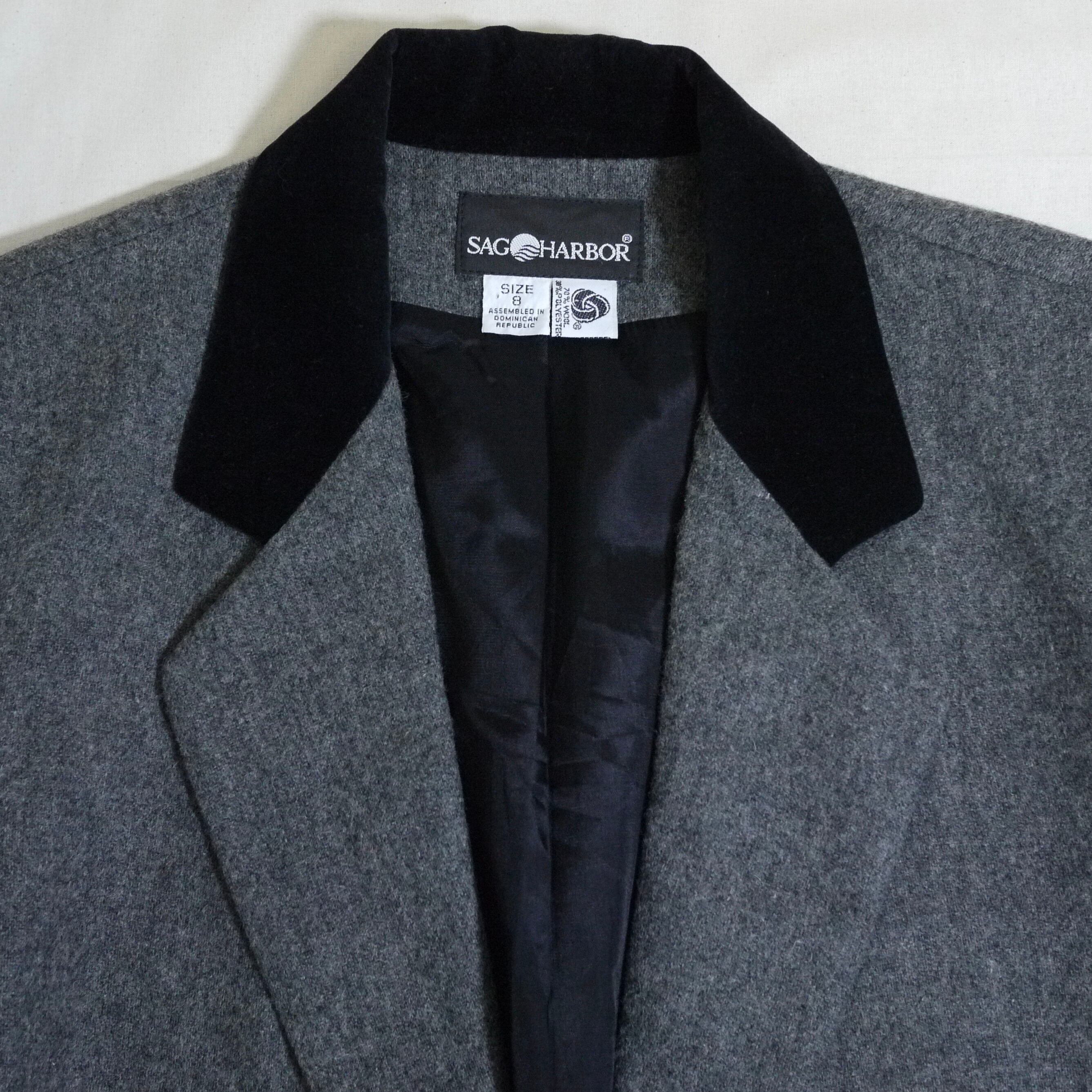 グレーカラーのウール地に上襟がベロア地の切り替えデザイン。