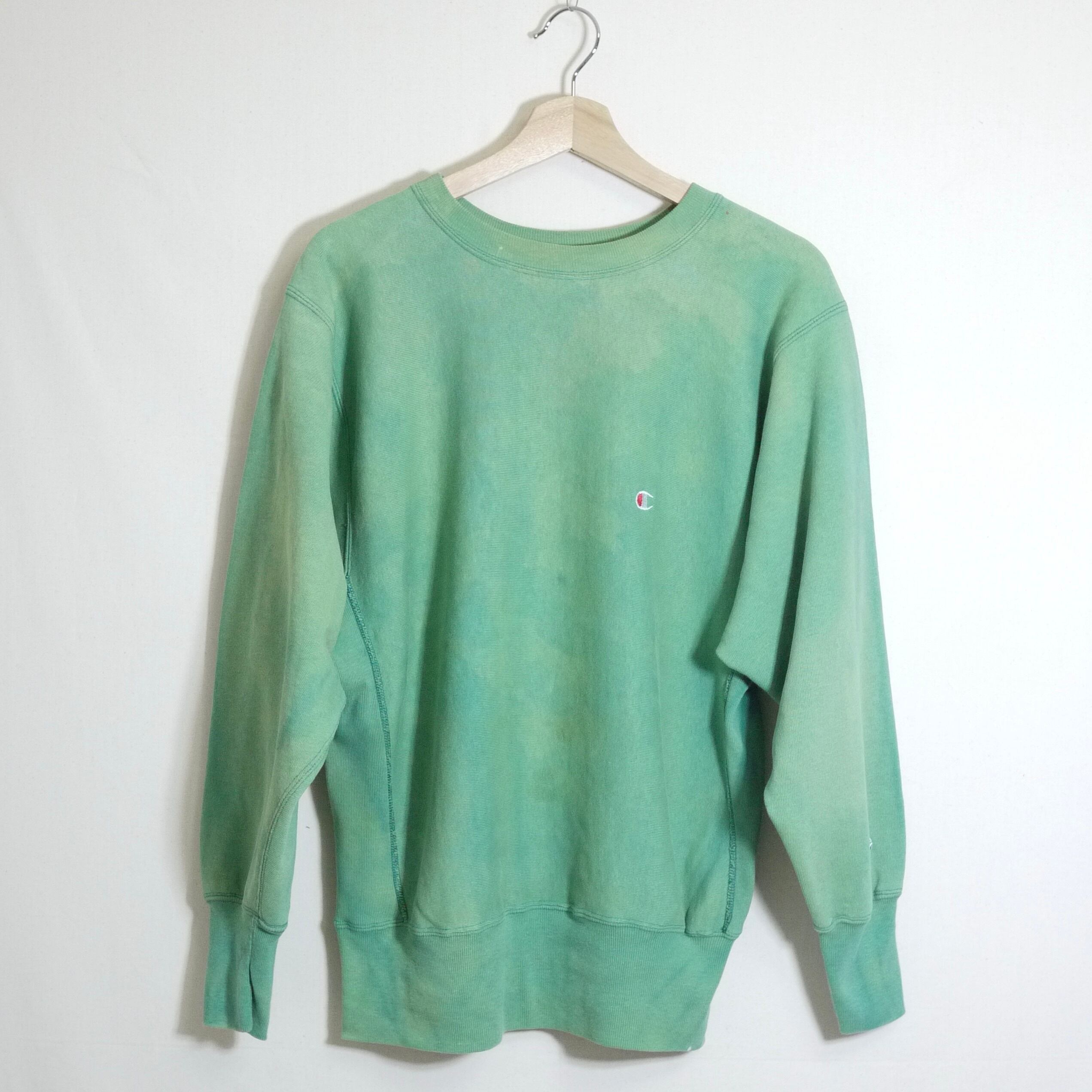 状態は、全体的に同系色のまばらなタイダイカラーになっています。前身頃の裾付近に汚れ。裾のリブに色抜け。その他、全体的に経年による使用感は多少ありますが、目立った汚れやダメージはなく着用に問題はありません。