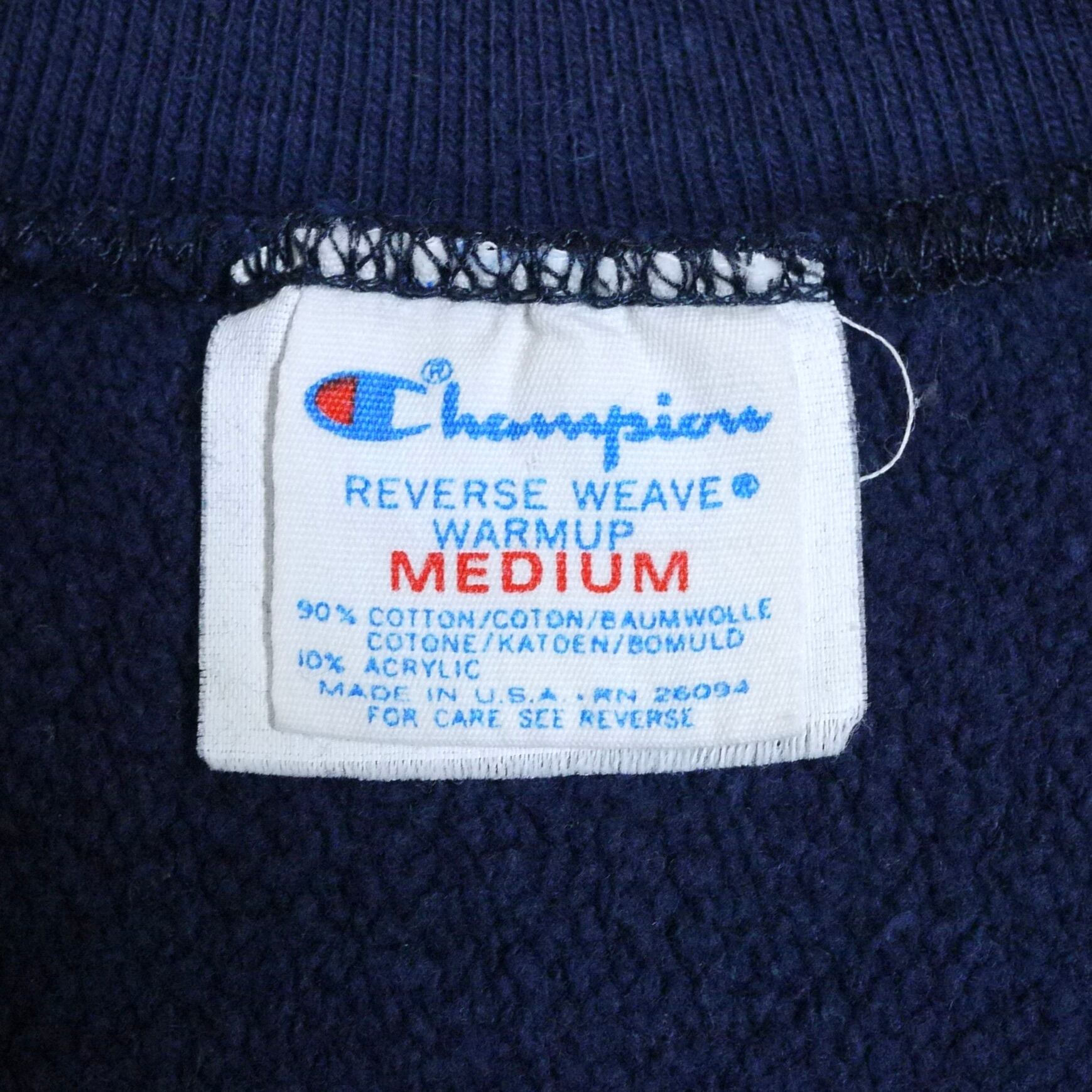 ネイビーカラーのボディに胸にロゴの刺繍がデザインされたREVERSE WEAVE。
