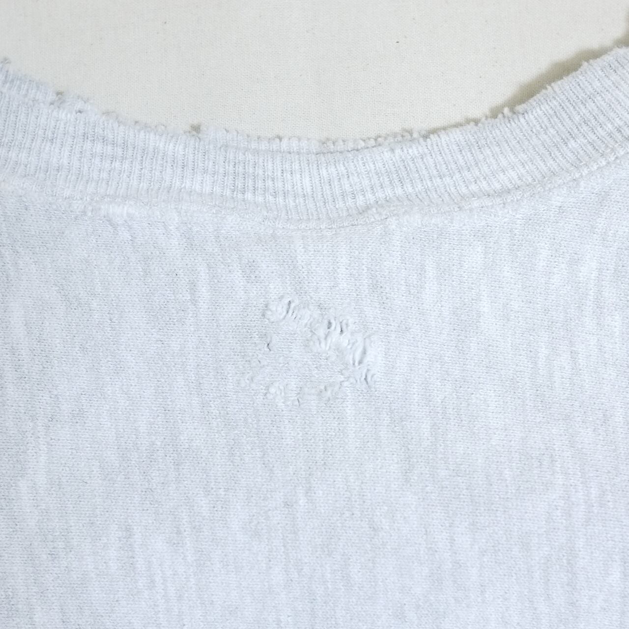 状態は、ネックのリブや付近にほつれ。プリント上に小穴が三か所。ピンホールが二か所。薄っすらとした小さな汚れが一か所。その他、全体的に経年による使用感は多少ありますが、目立った汚れやダメージはなく着用に問題はありません。