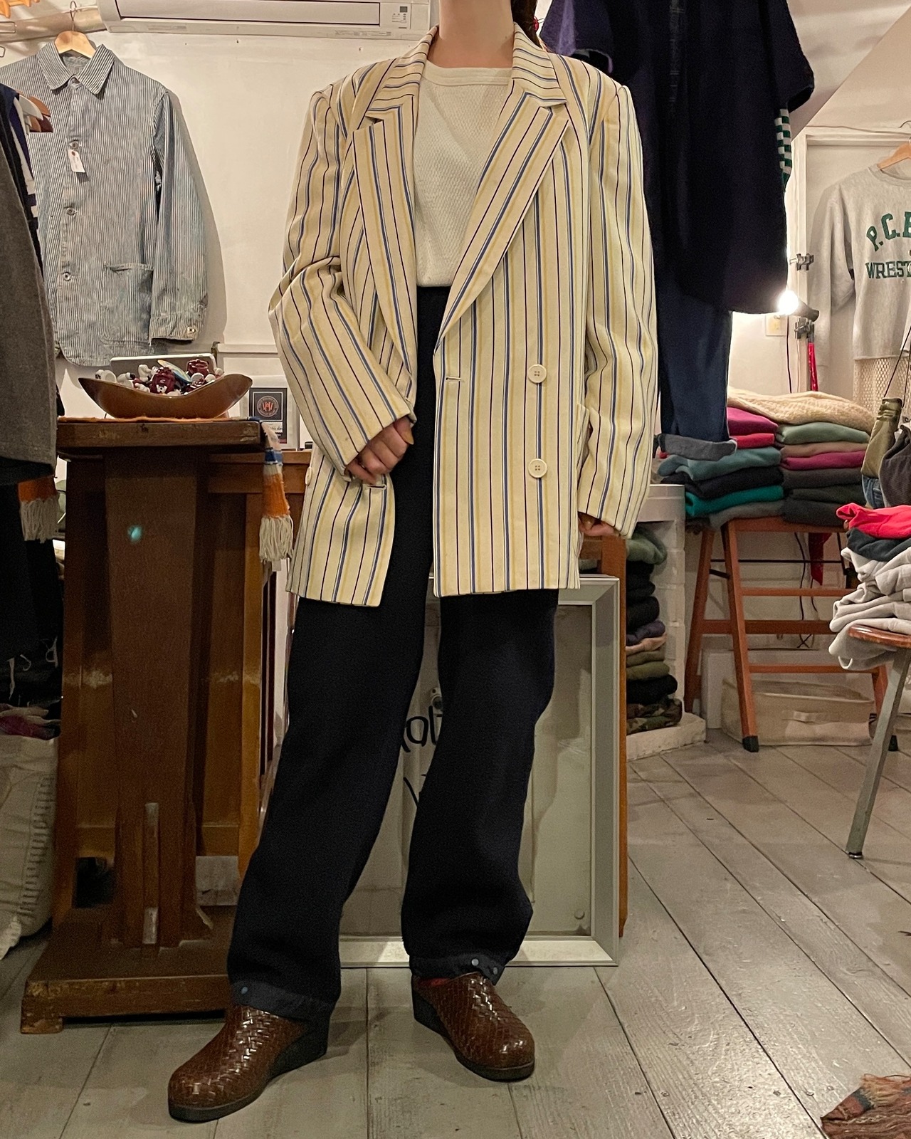 状態は、両袖と裏地に所々小さなシミ汚れ。その他、経年による使用感が多少ありますが、目立ったダメージや汚れはなく着用に問題はありません。