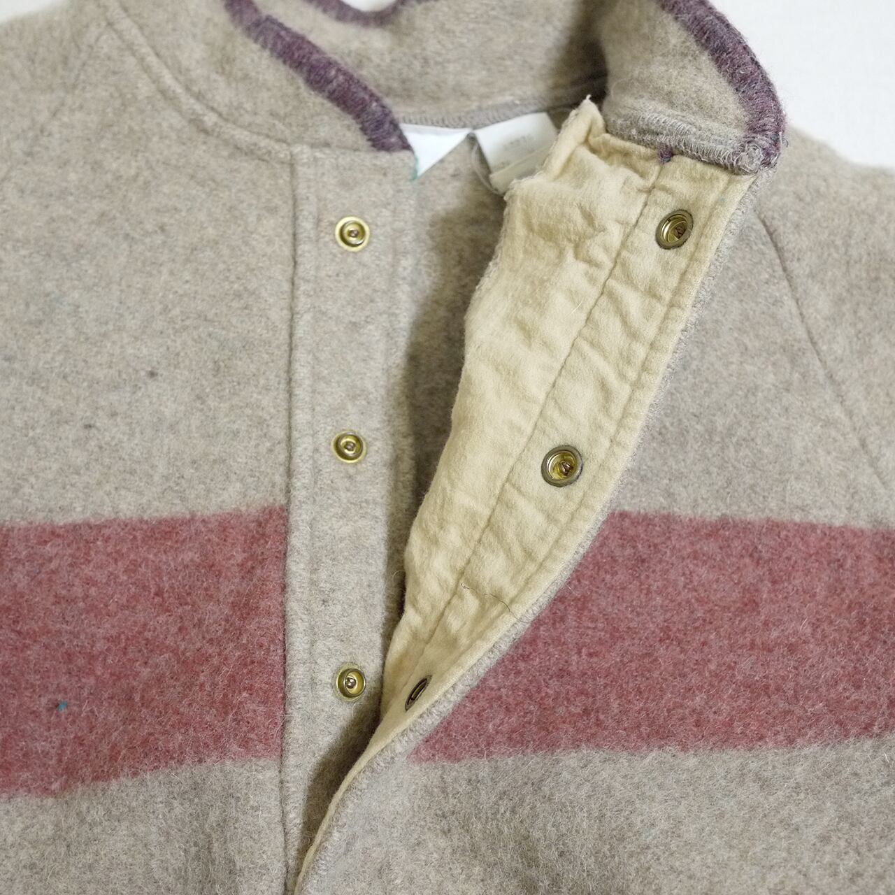 アメリカ製。ウール85%、ナイロン15%。ブランド刻印入りのスナップボタン。