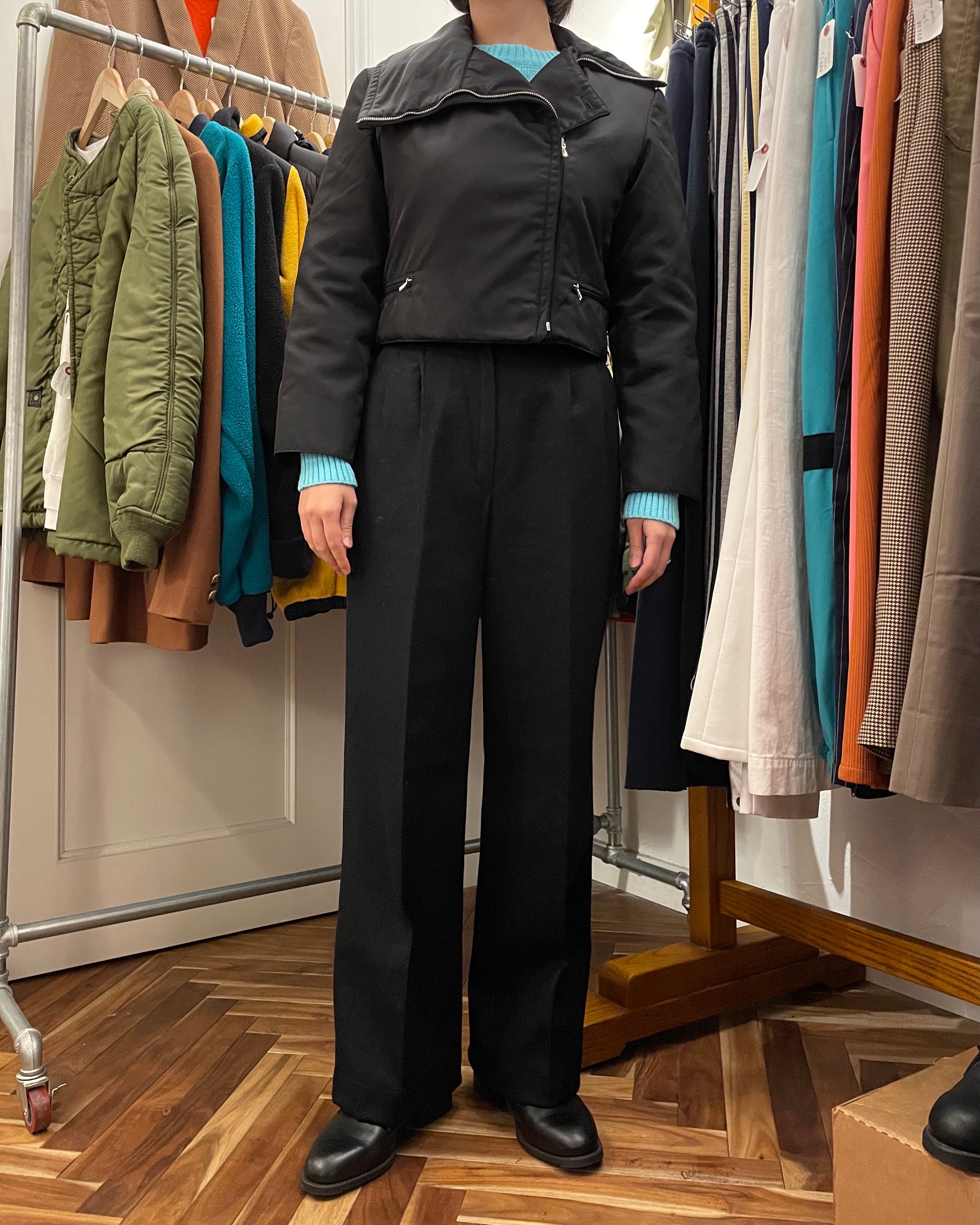 フロントジッパーを上まで上げることで様々な着こなしが可能。
