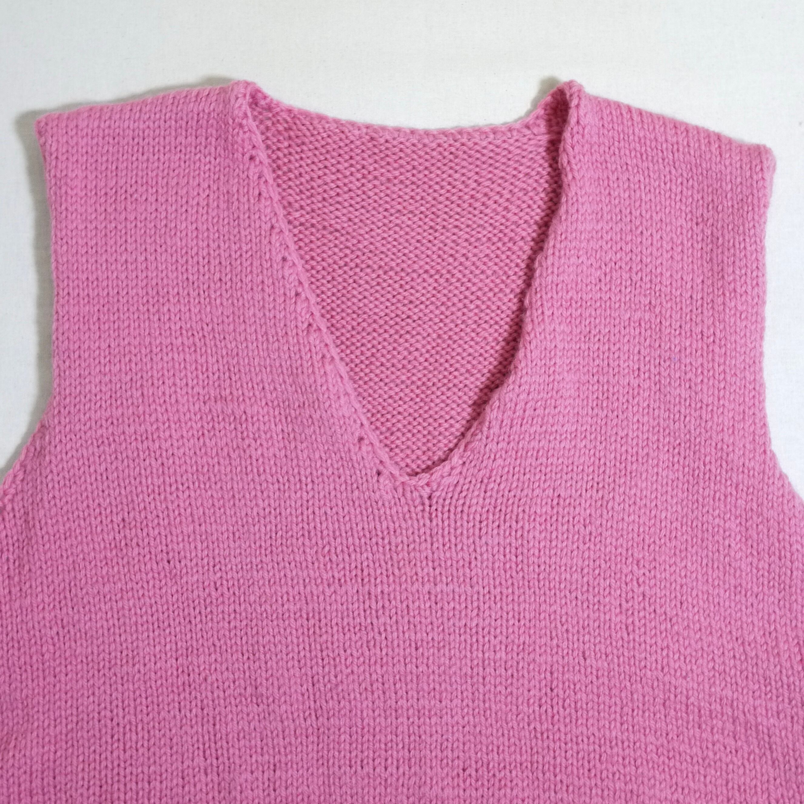 ピンクのパステルカラーが女性らしさを演出してくれるニットベスト。