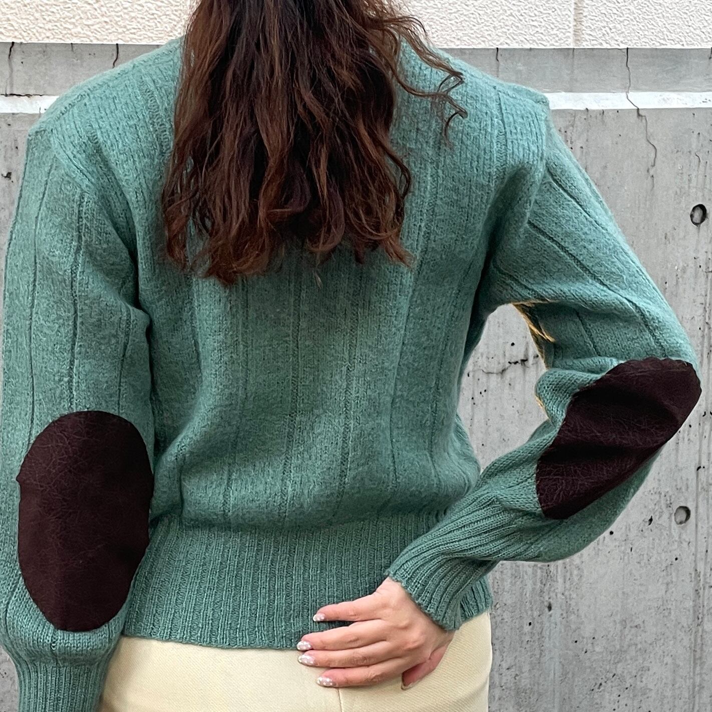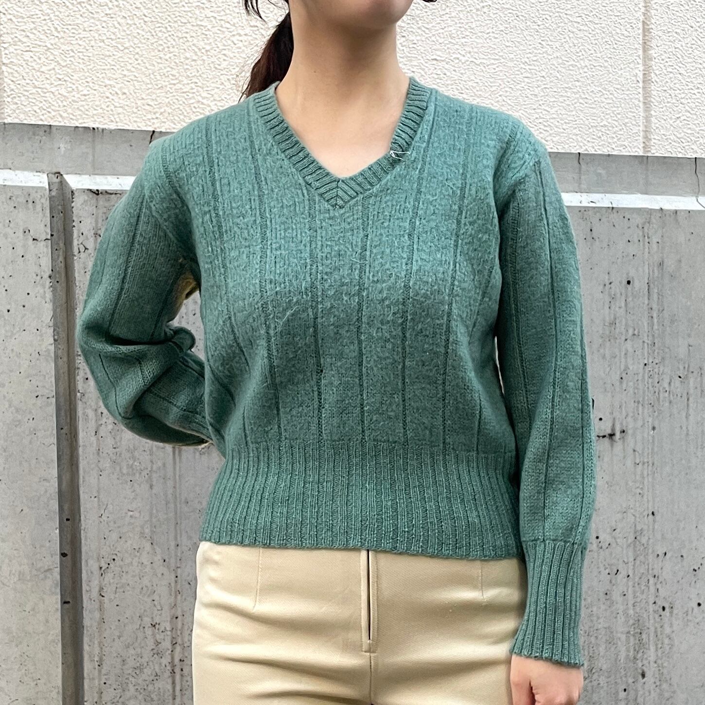 落ち着いたブルーグリーンカラーのモヘアセーター。