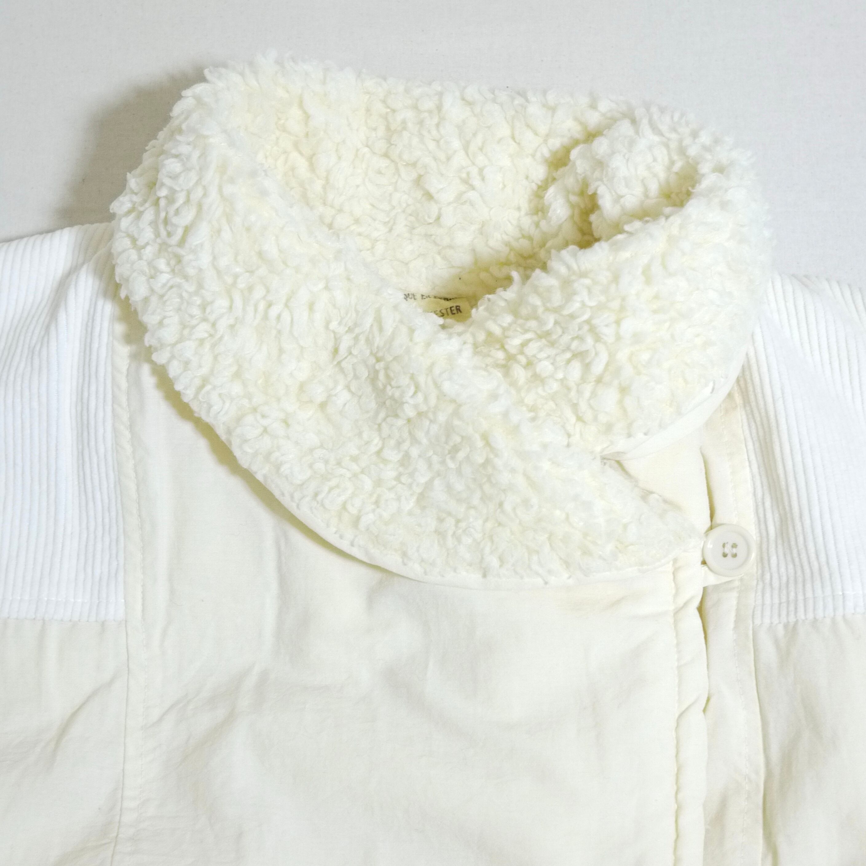 ホワイトカラーのボアコート。