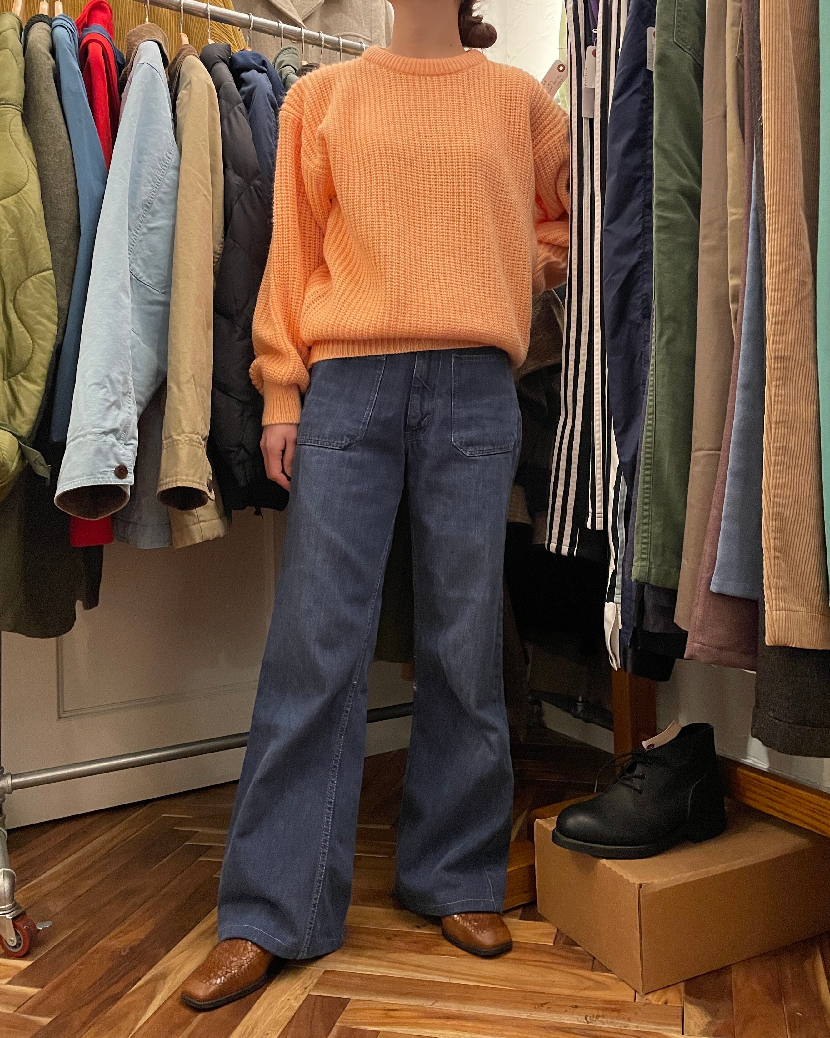 アクリルな分、ニット特有のチクチク感がなく暖かい日は一枚で素肌で合わせても◎