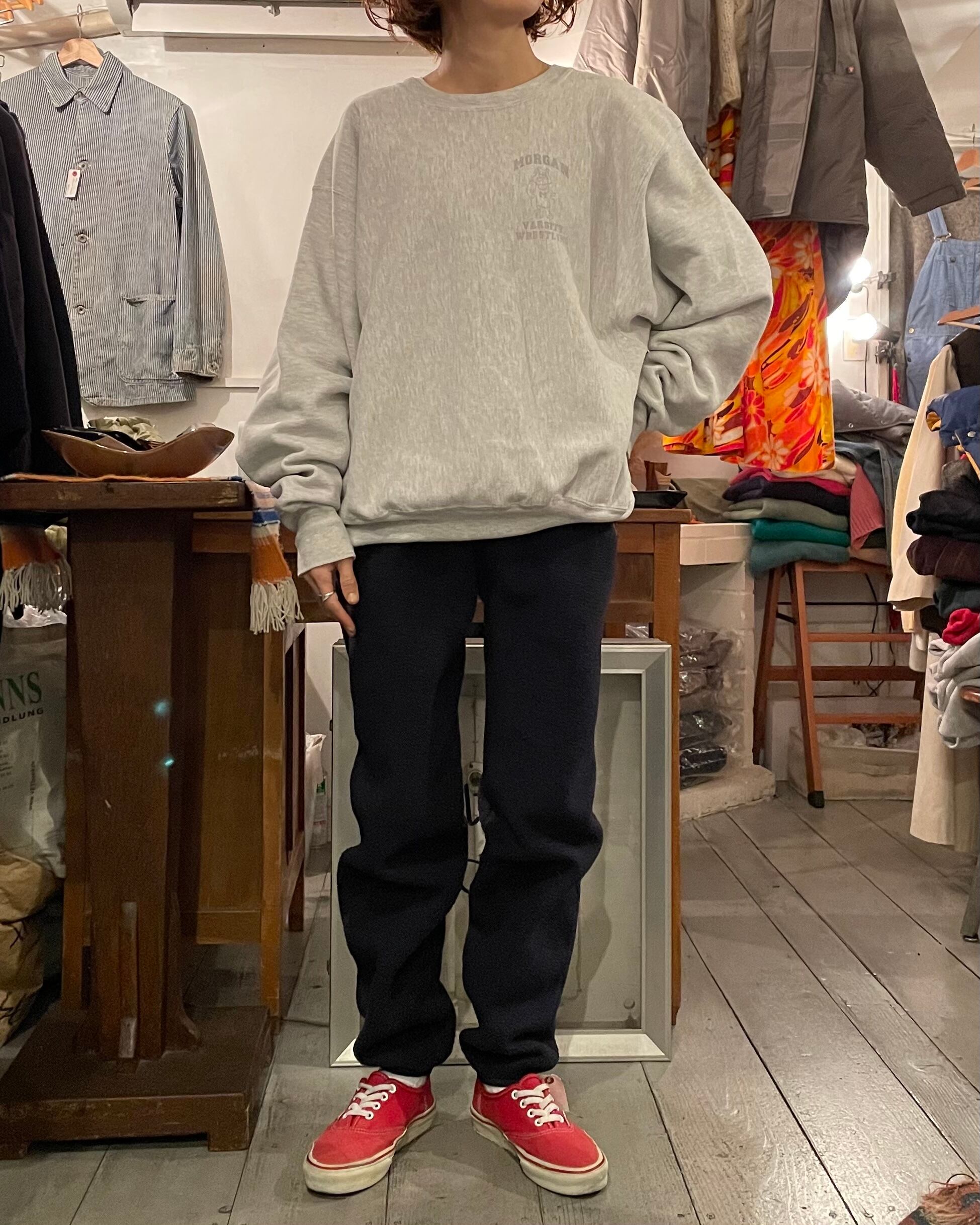 合わせやすい無地のネイビーカラーのフリースパンツ。