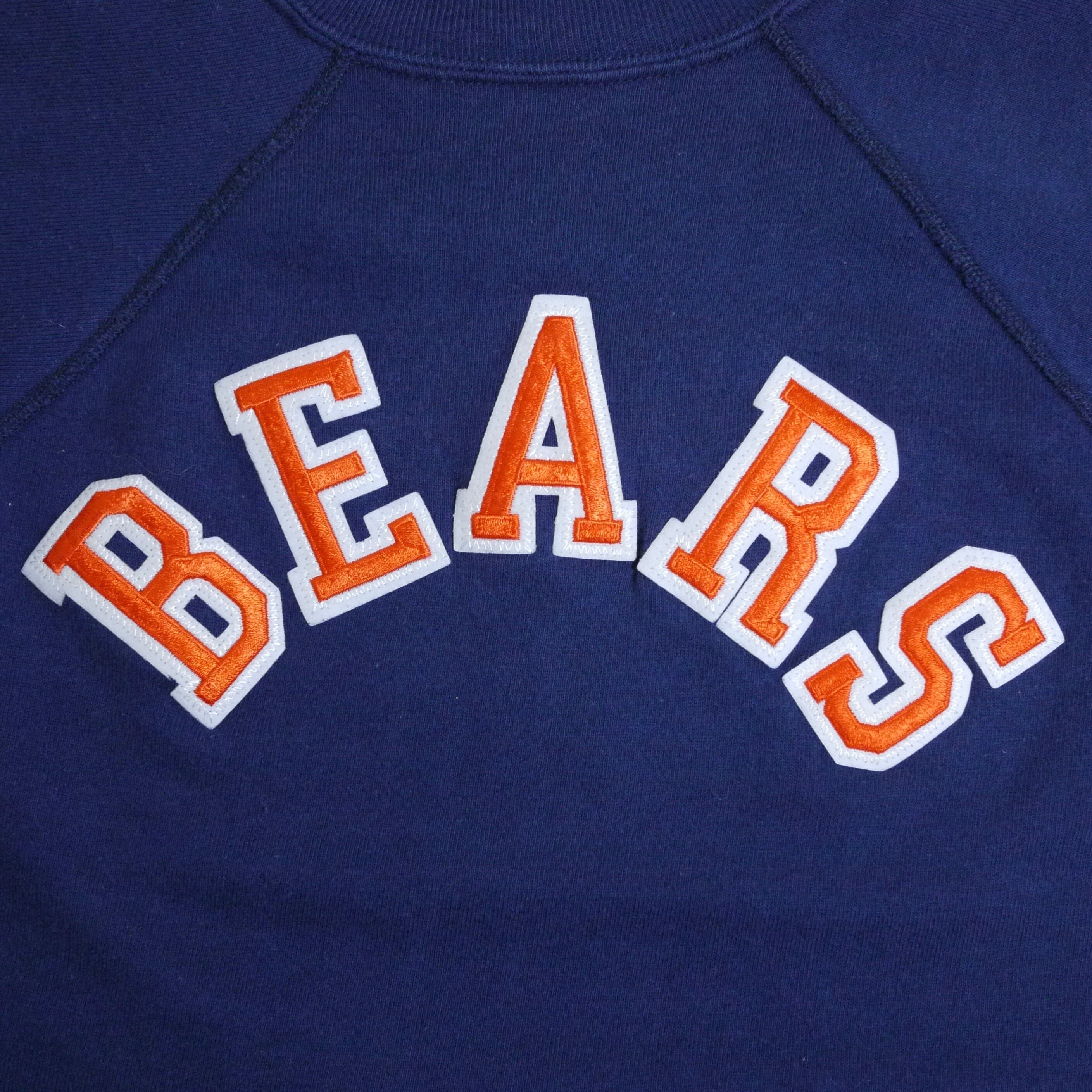 ネイビーカラーのボディにワッペンプリントのスウェット。