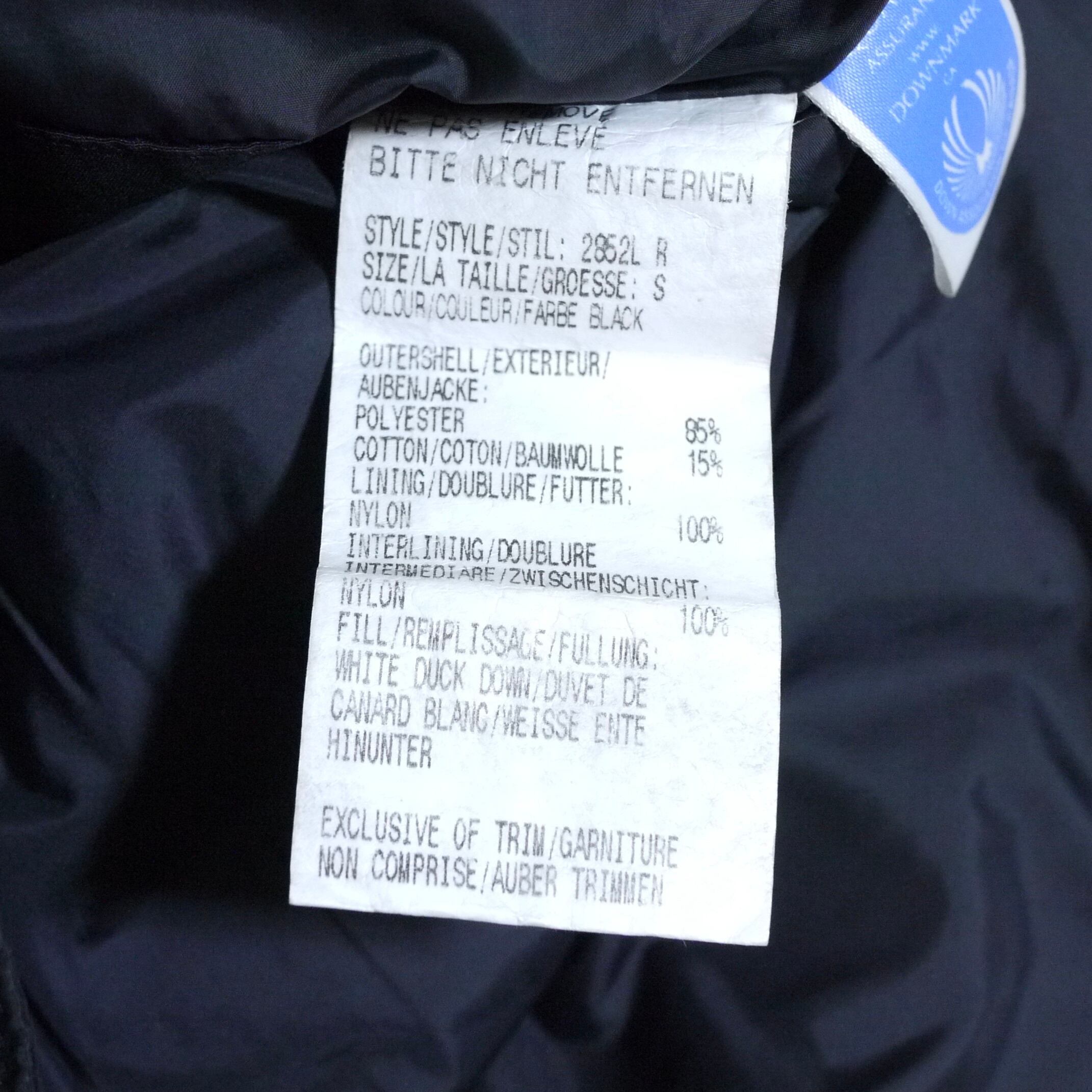 カナダ製。シェルはポリエステル85%、コットン15%。インサレーションはダウン。