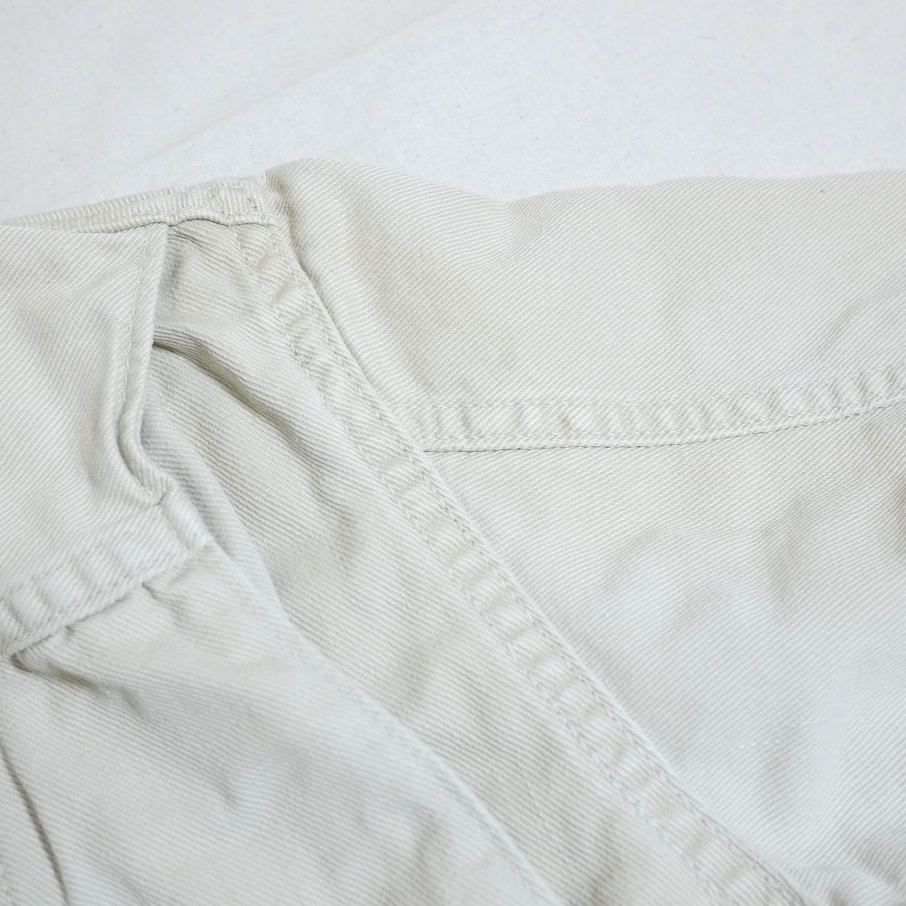 状態は、両袖を中心に小さな汚れ。左の胸ポケット、トップボタン下、左ポケット付近に薄らシミ。両肩から袖にかけて保管時のヤケ。その他、スレなどの経年による使用感がありますが、着用に問題はありません。アジとして捉えて頂ける方にお願いします。