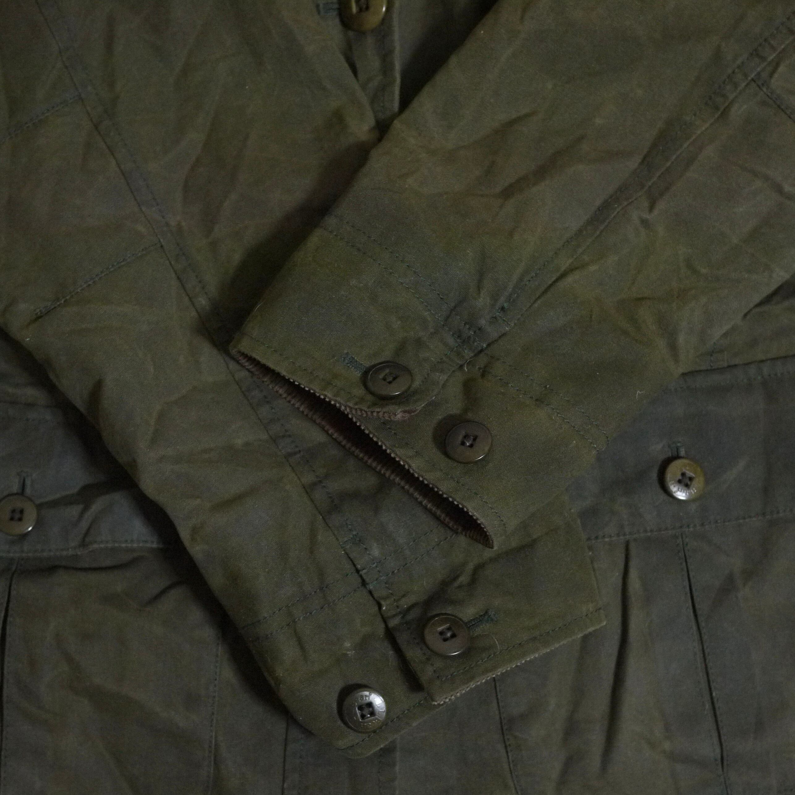 オリーブカラーのワックスコットンジャケット。