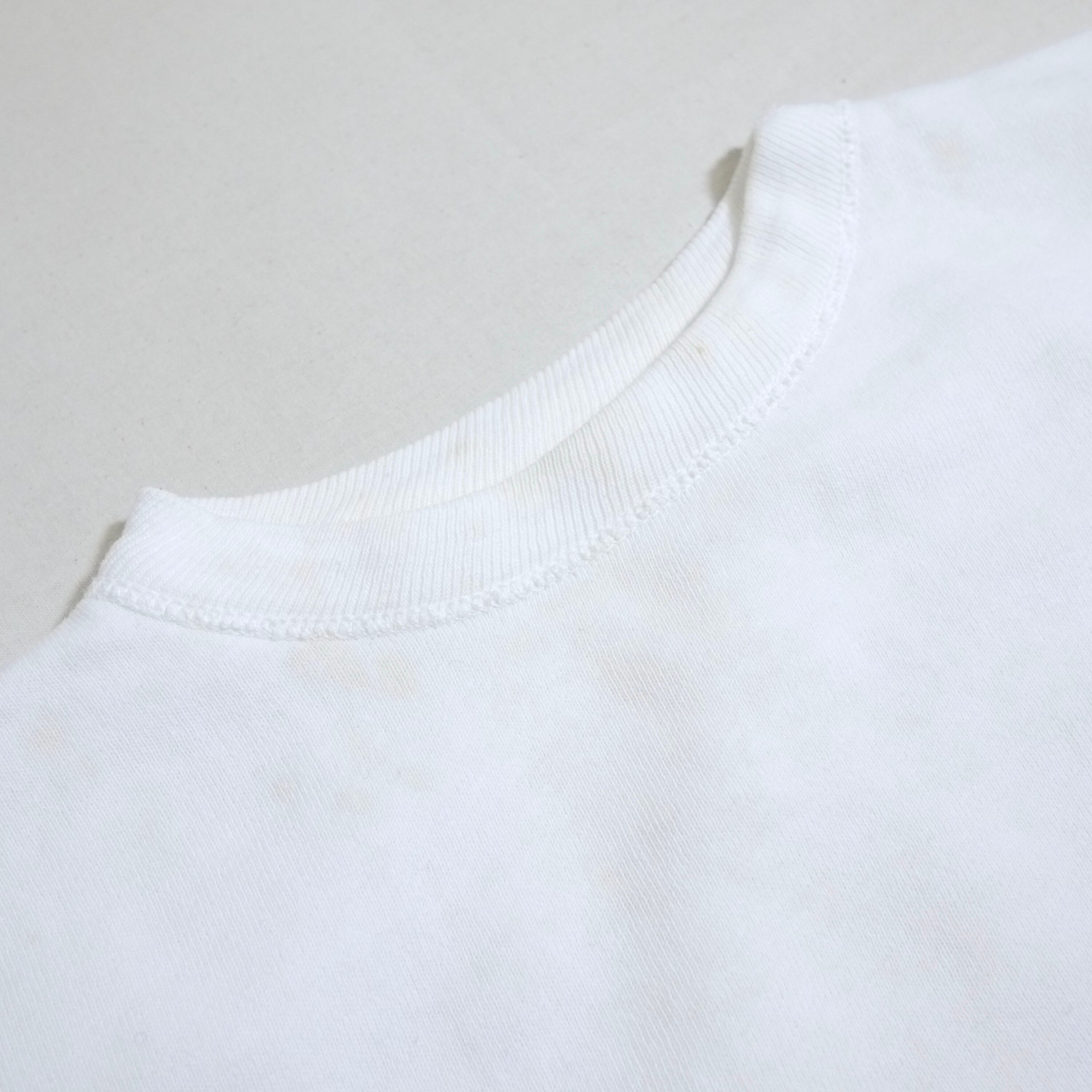 状態は、両面ともネック周辺の広範囲に薄らシミ汚れ。裾のリブに汚れ。その他、経年による使用感はありますが、着用に問題はありません。アジとして捉えて頂ける方にお願いします。