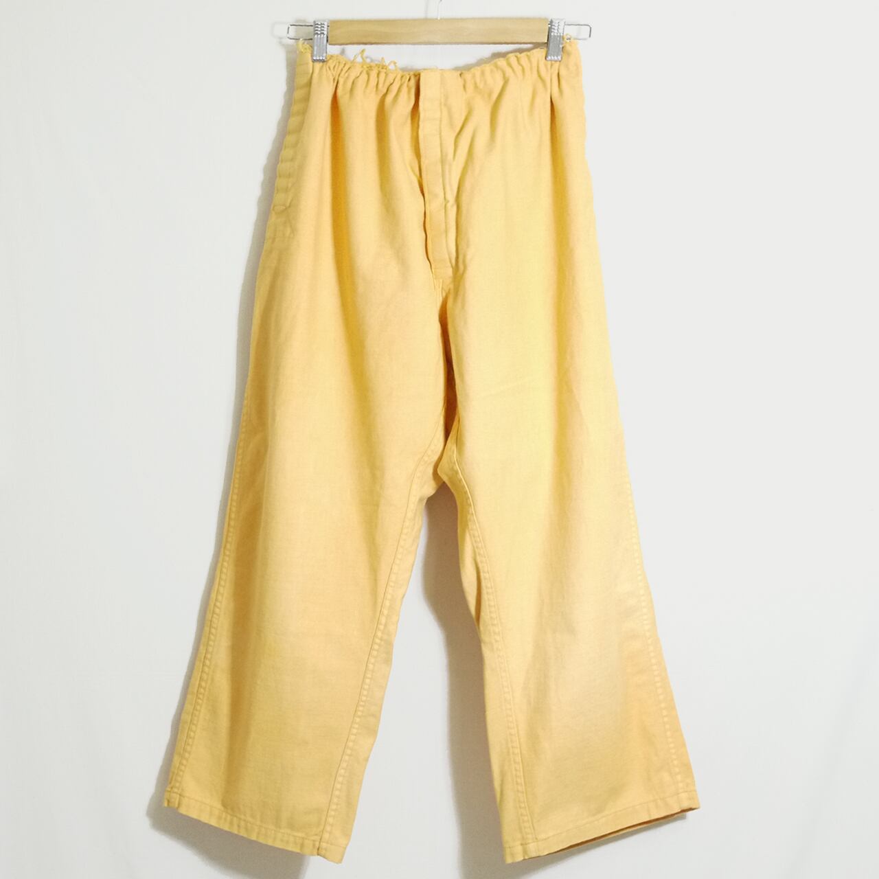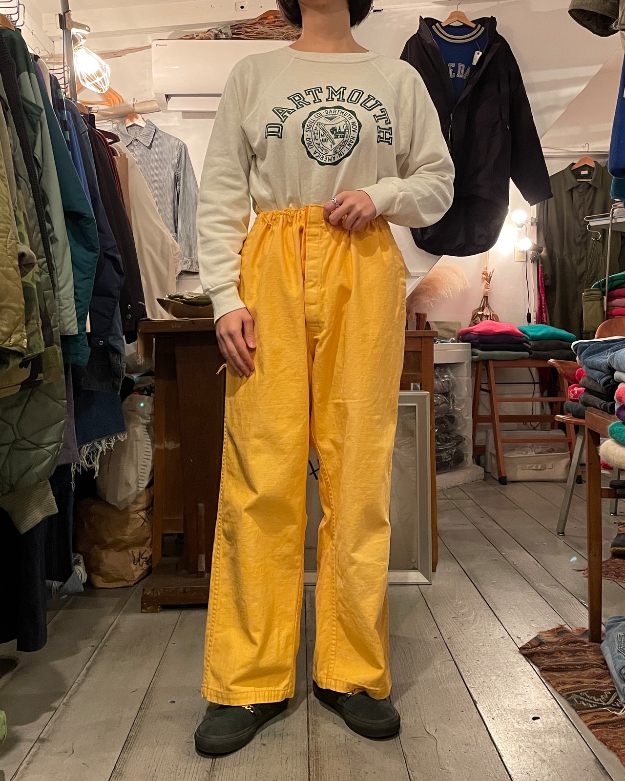 肌馴染みの良いイエローなので、カラーパンツの中でも取り入れやすいお色味かと思います。ぎゅっと絞ったウエストディテールが可愛いのでタックインスタイルが特にオススメです。