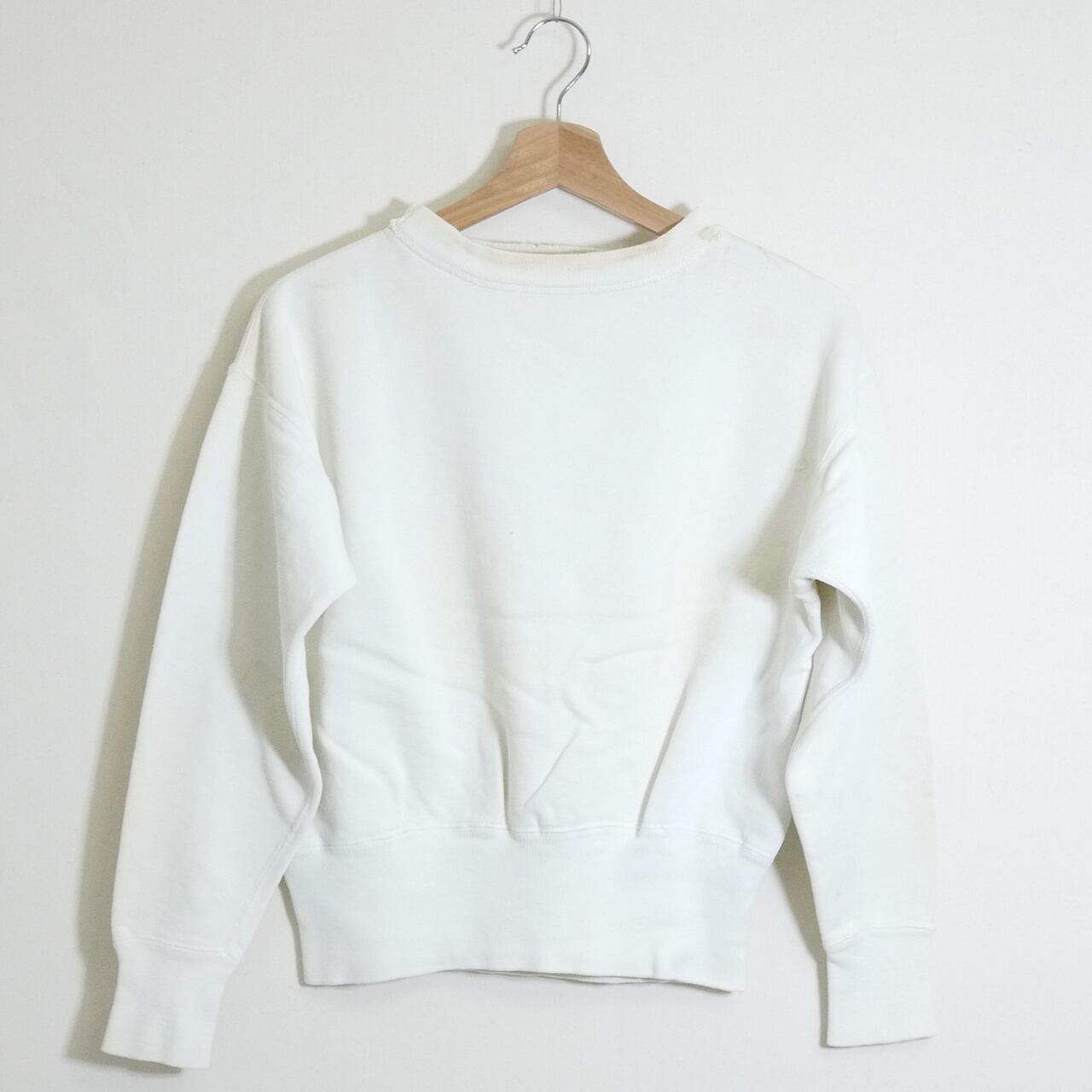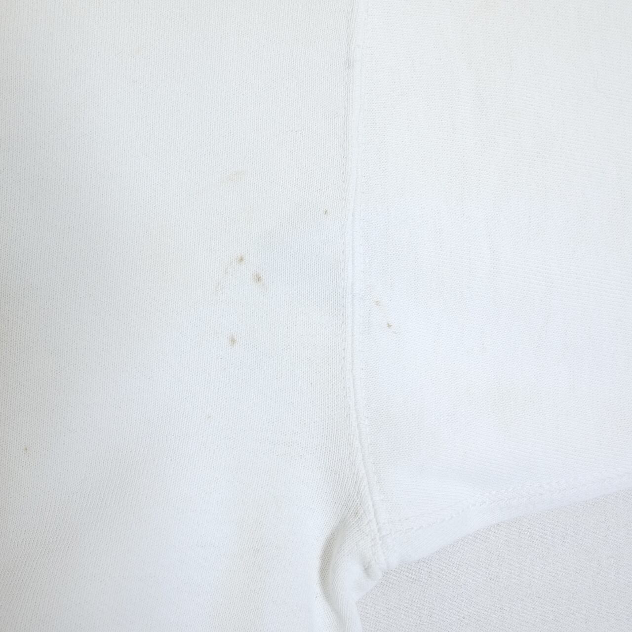 状態は、前身頃の裾リブ付近に小穴。両肩、両袖など全体的に所々汚れ。後ろ側のネックのリブに汚れ。ボディ全体にヤケのような汚れ。その他、経年による使用感はありますが、着用に問題はありません。アジと捉えて頂ける方にお願いします。