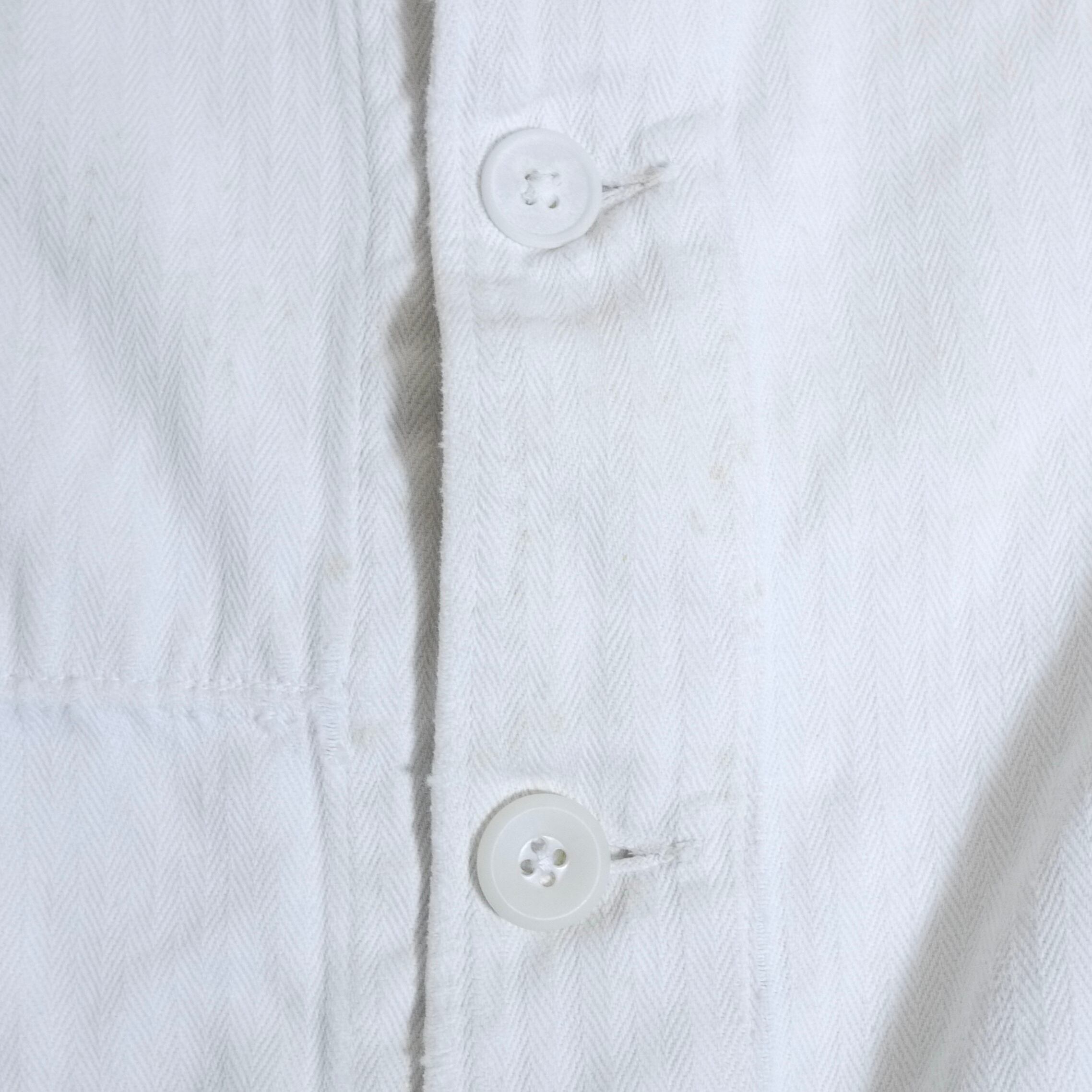 状態は、下から2番目のボタンが交換されています。前身頃の右胸付近に薄ら汚れ。ネックにほつれ。左脇の後ろ側のステッチ部分にほつれがありますが外れてはいません。その他、全体的に経年による使用感はありますが、着用に問題はありません。アジとして捉えて頂ける方にお願いします。