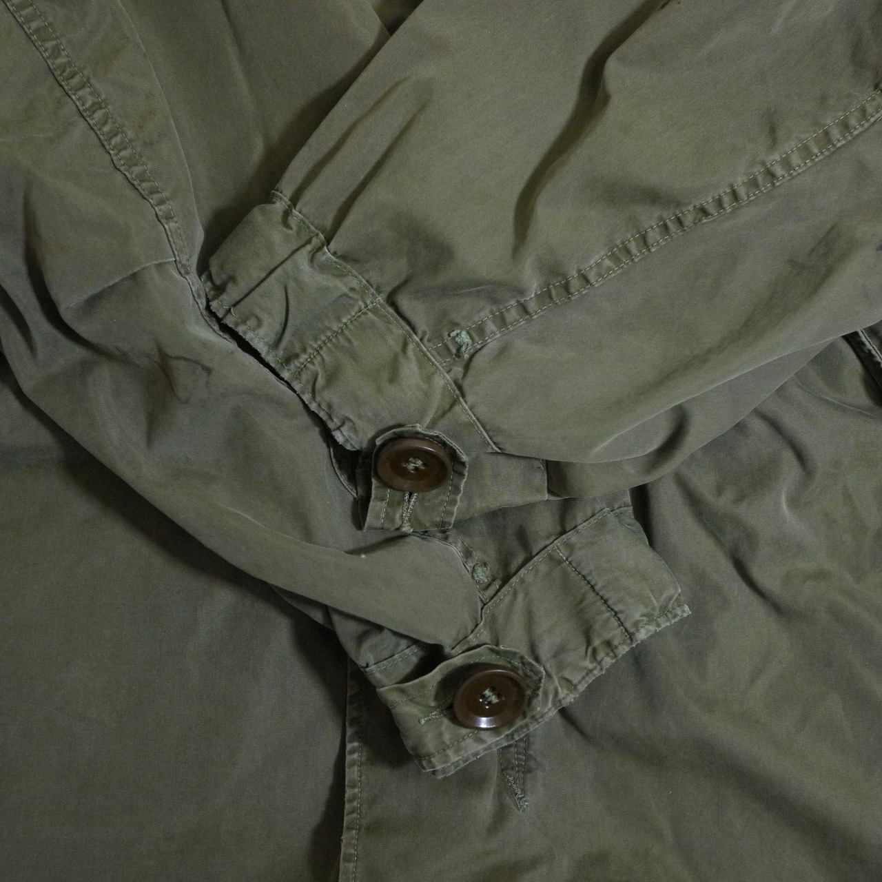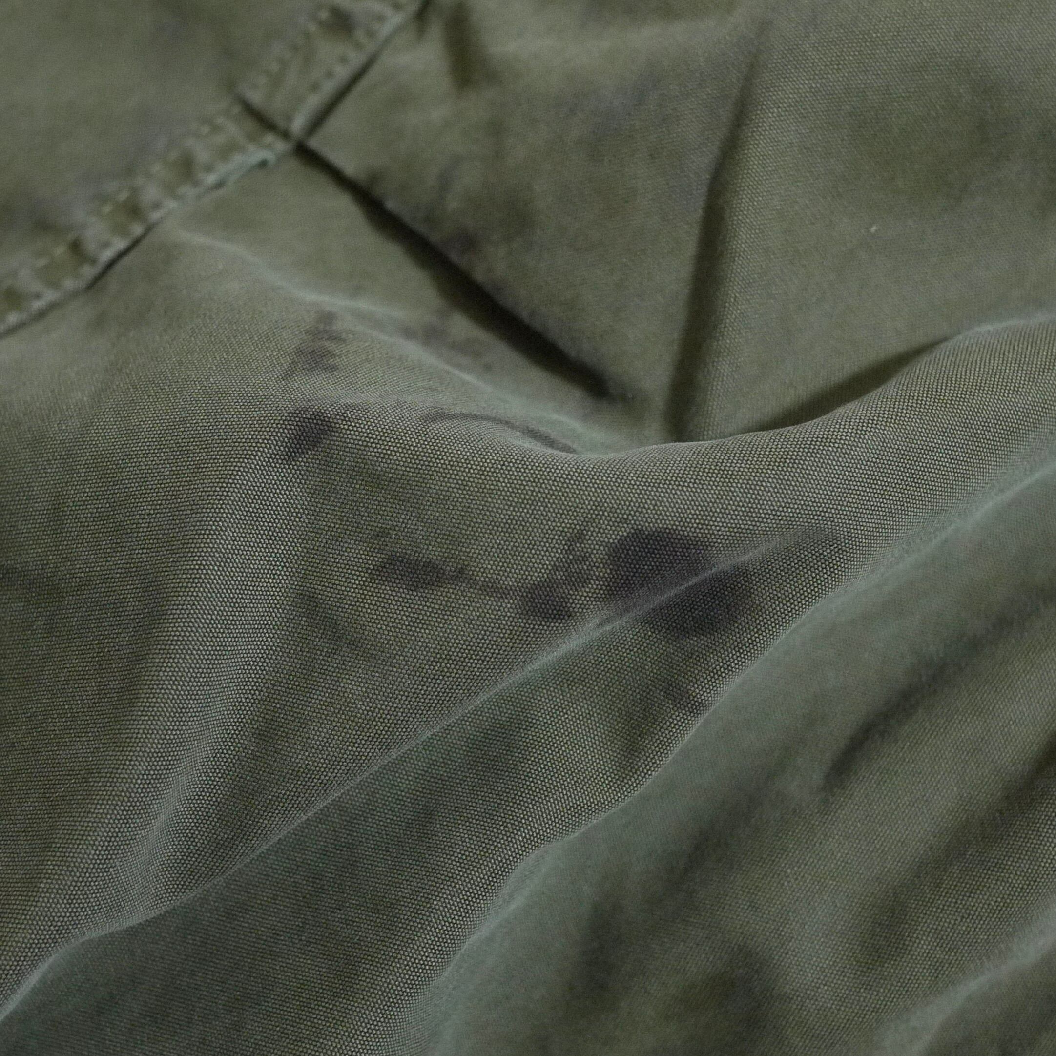 状態は、前身頃の左側の裾付近、左胸、両袖、後ろ身頃裾付近に汚れ。右袖の縫製部分にスレはありますが破れてはいません。その他、経年による使用感はありますが、着用に問題はなりません。ミリタリーアイテムの特性をご理解頂ける方にお願いします。