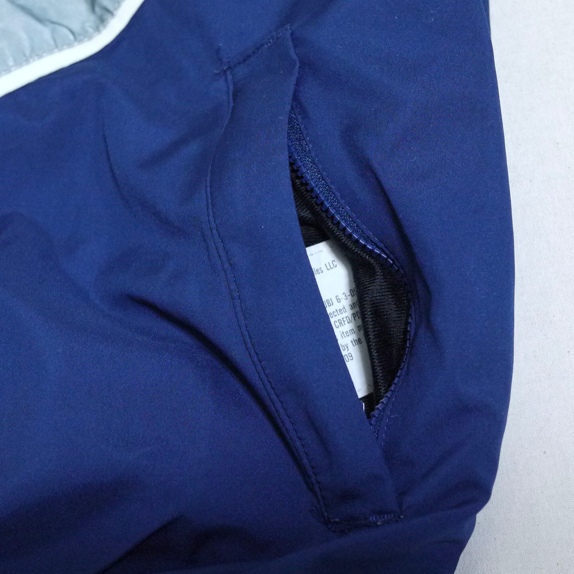 裏地にはメッシュが使用されていて、両面のV字ラインはリフレクター、ジッパー付きポケット。
