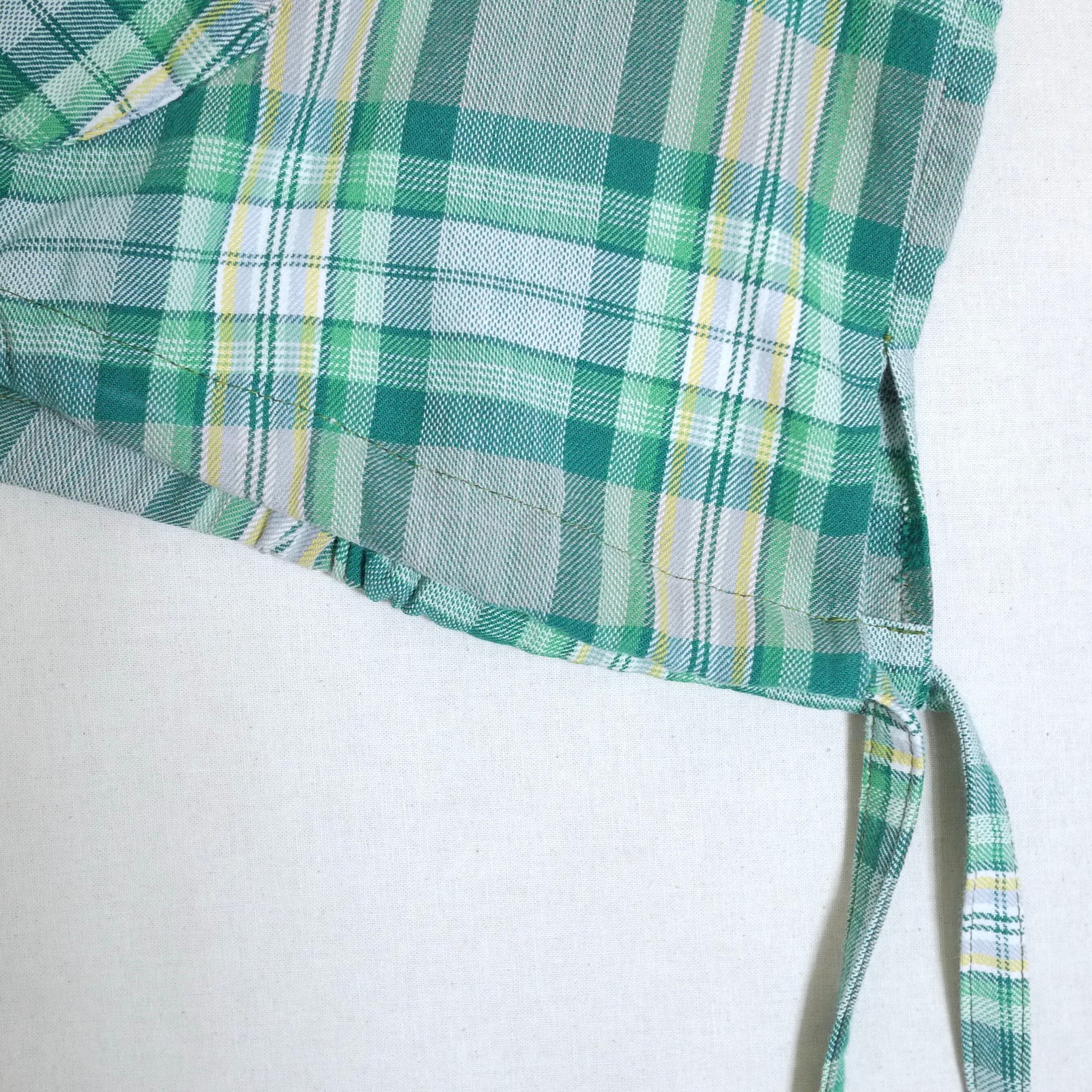 同生地の紐を絞ることでシルエットを変えることができ、結ぶだけでもデザインのアクセントになります。