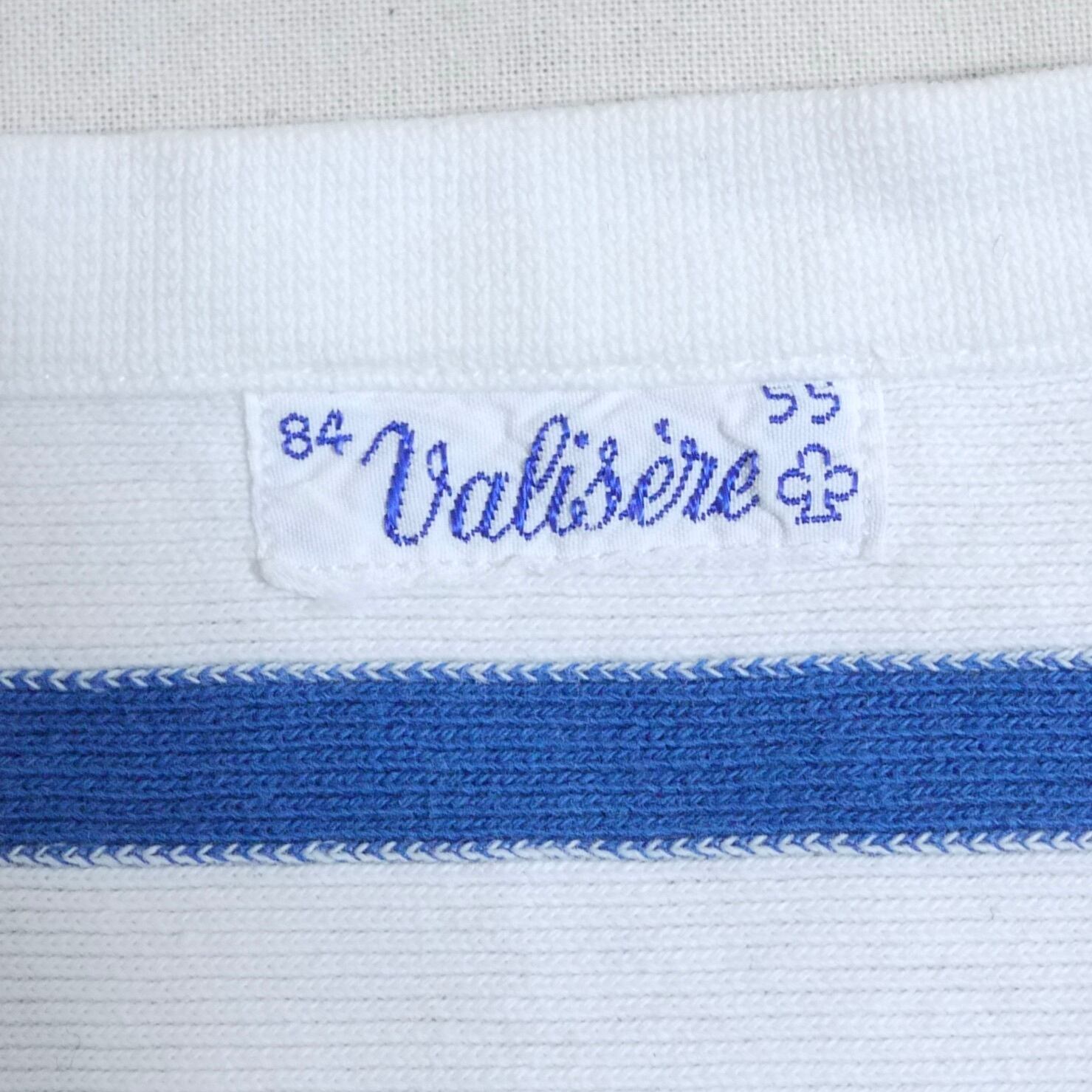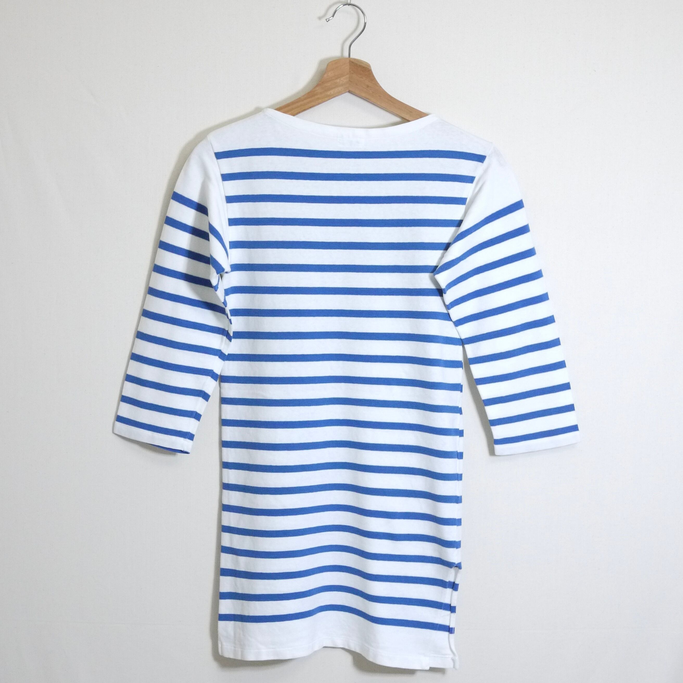 バスクシャツ特有のラフな風合いの厚手のコットン生地にボートネック。