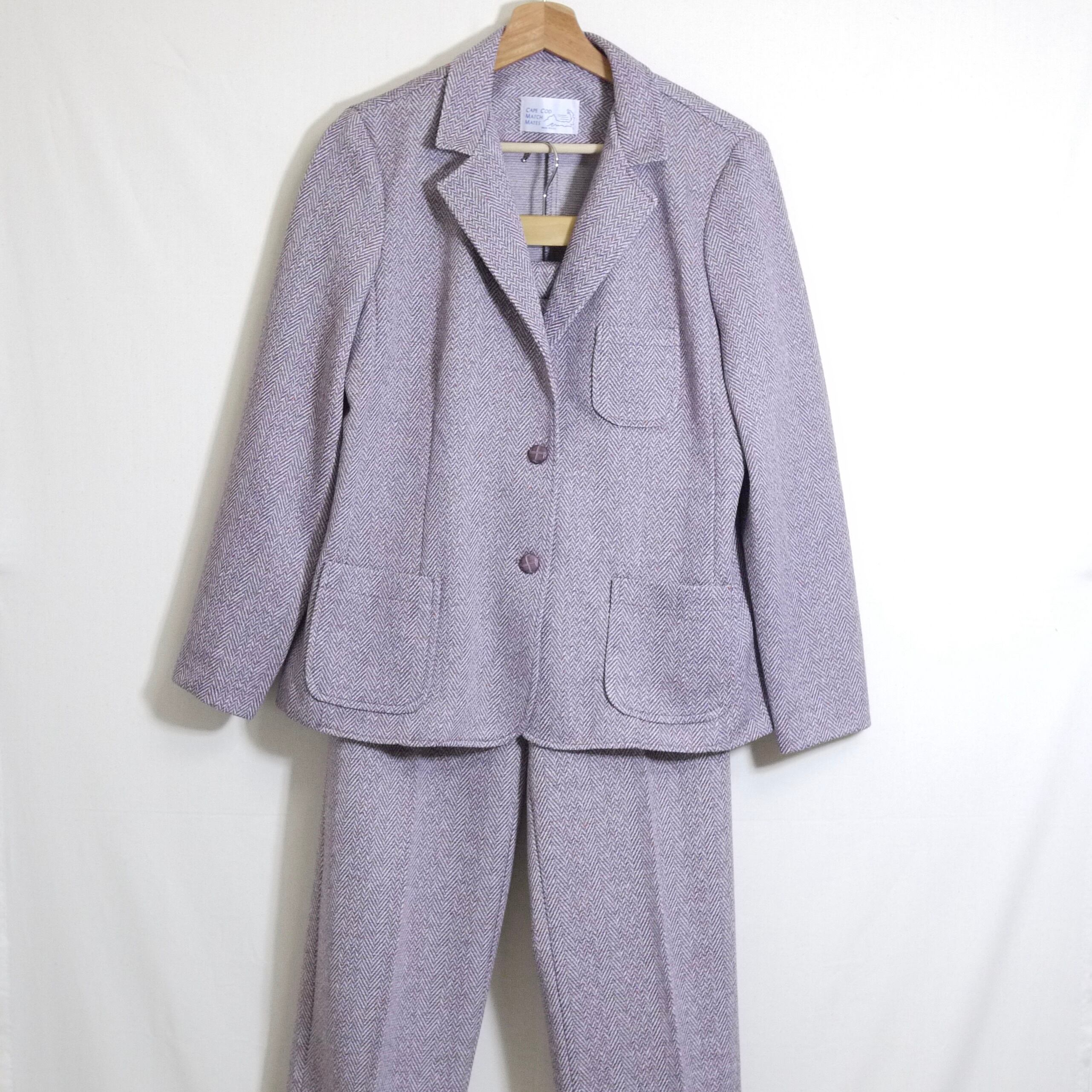 ジャケットはシンプルなテーラードジャケットのデザイン、ボトムスはイージーパンツタイプのストレートシルエット。