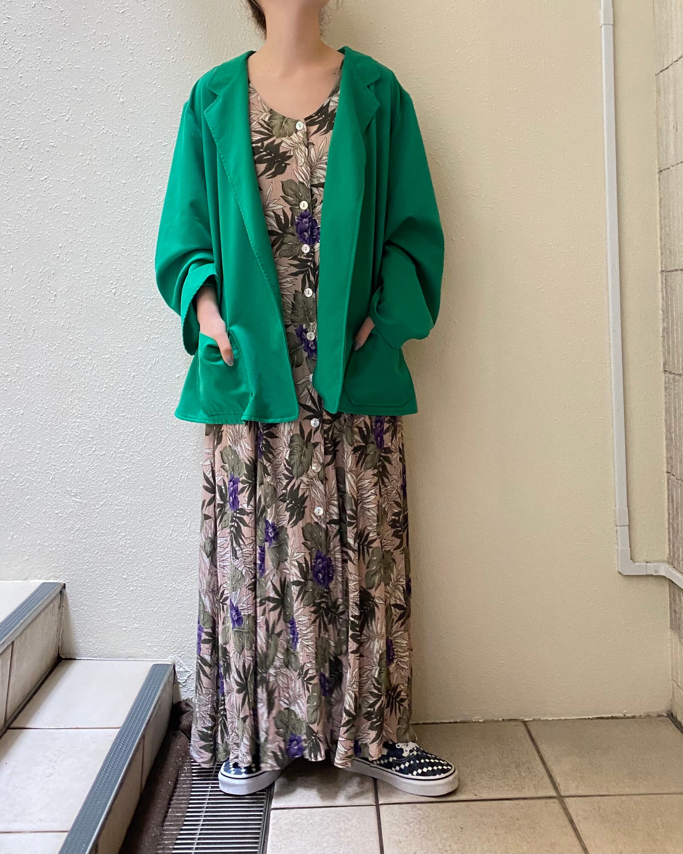 表情のある生地感の花柄ワンピース。